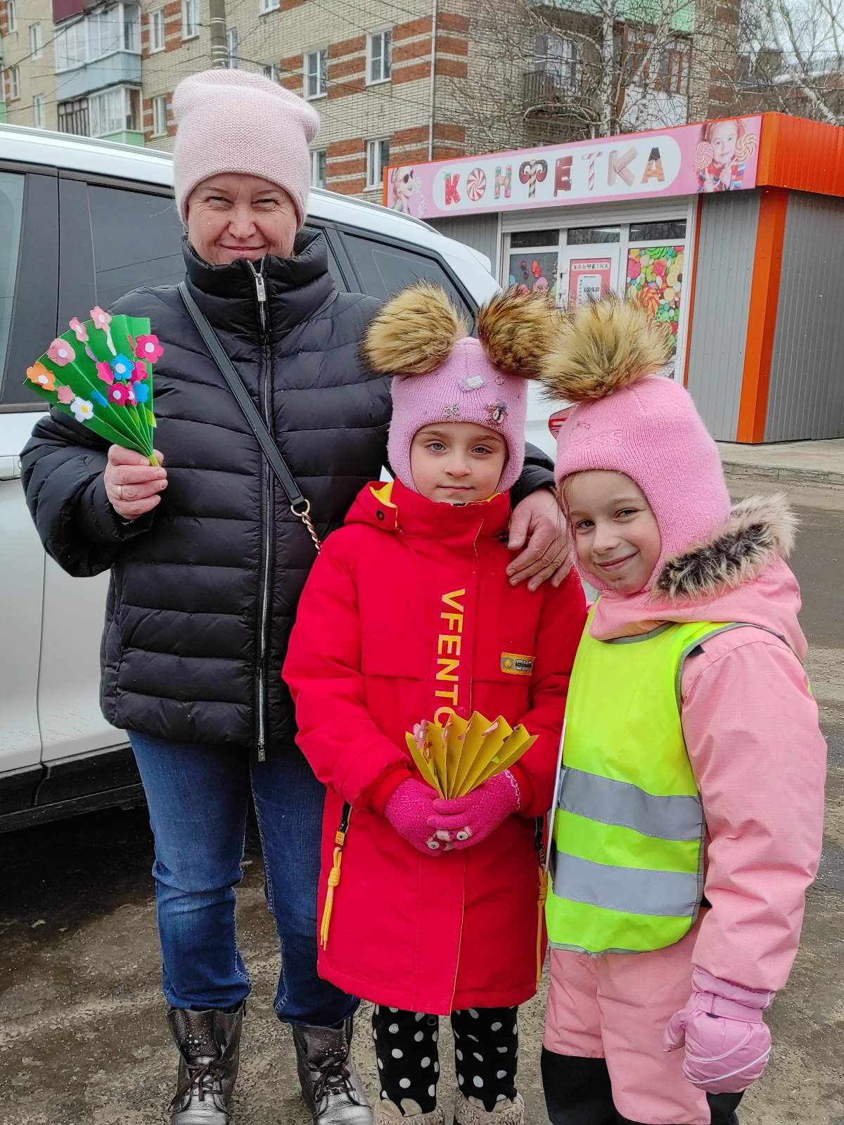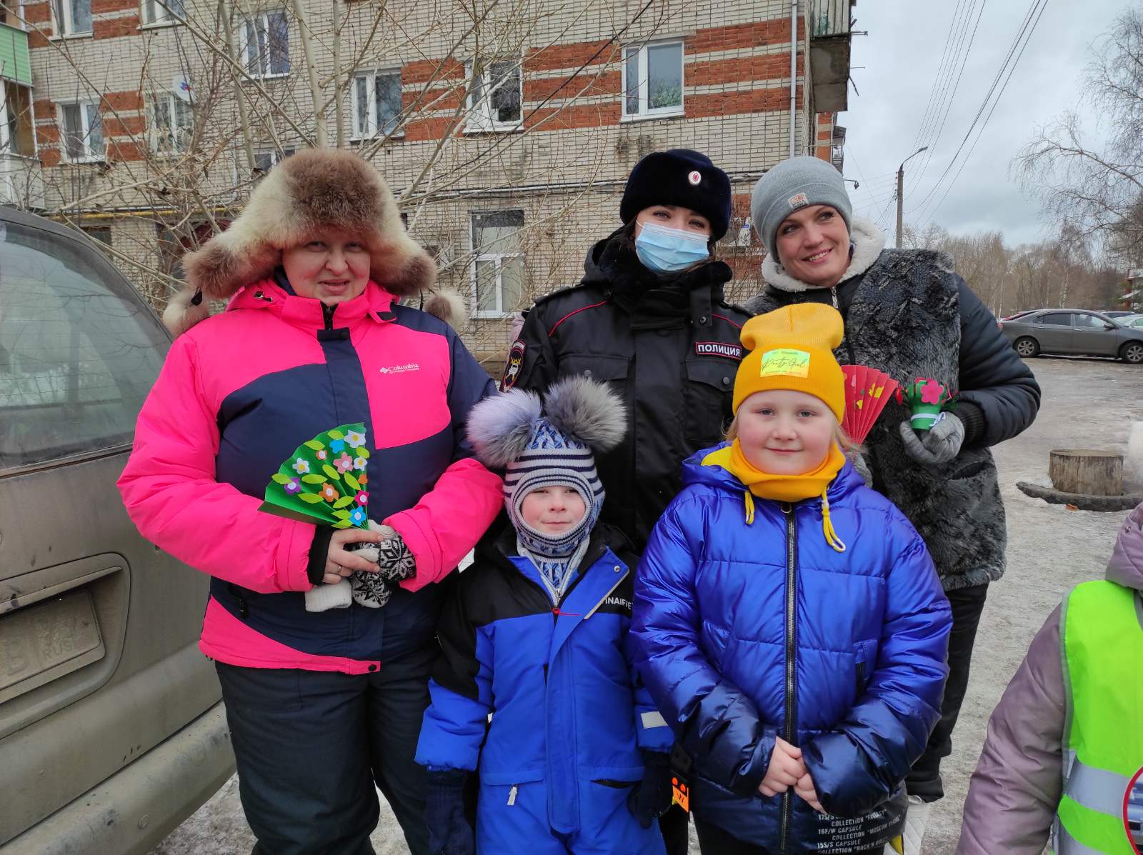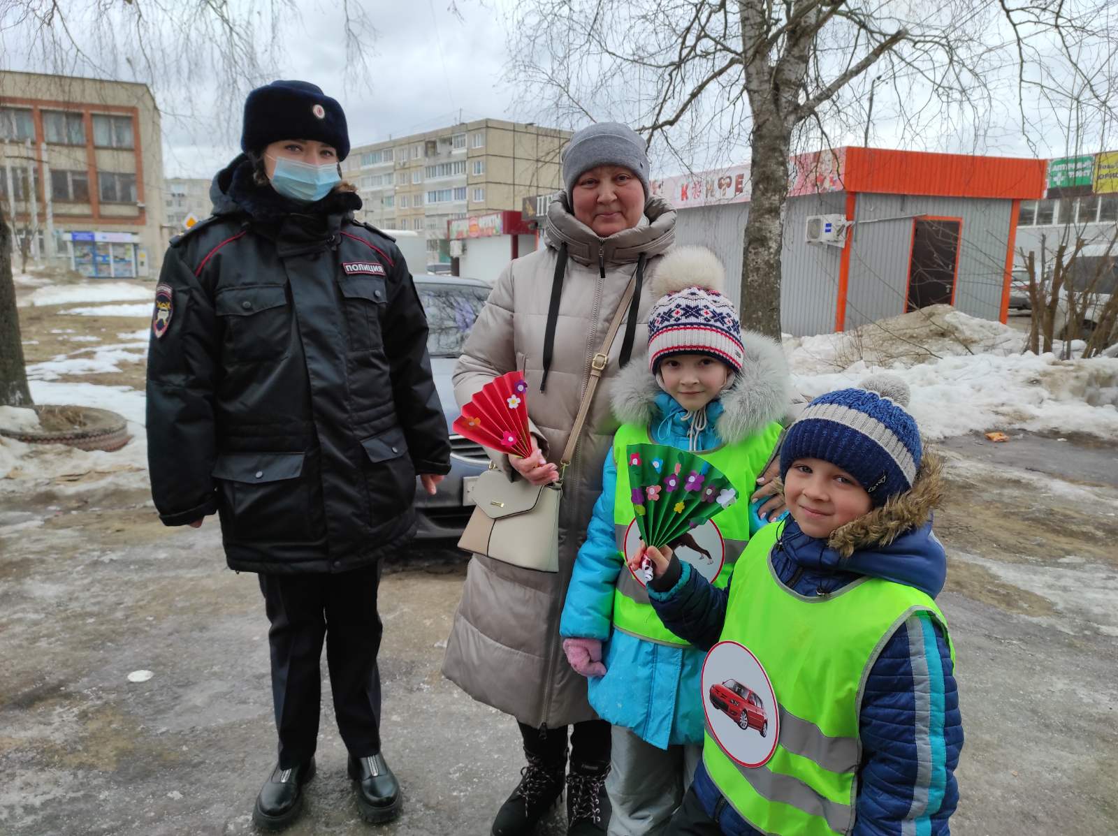 В ходе акции "Цветы для Автоледи" поздравили женщин-водителей и женщин-пешеходов с наступающим праздником 8 Марта, а инспектор ГИБДД по Собинскому району старший лейтенант Корнилова Т.В. поздравила всех участников дорожного движения с наступающим праздником и всем напомнила о выполнении правил дорожного движения.