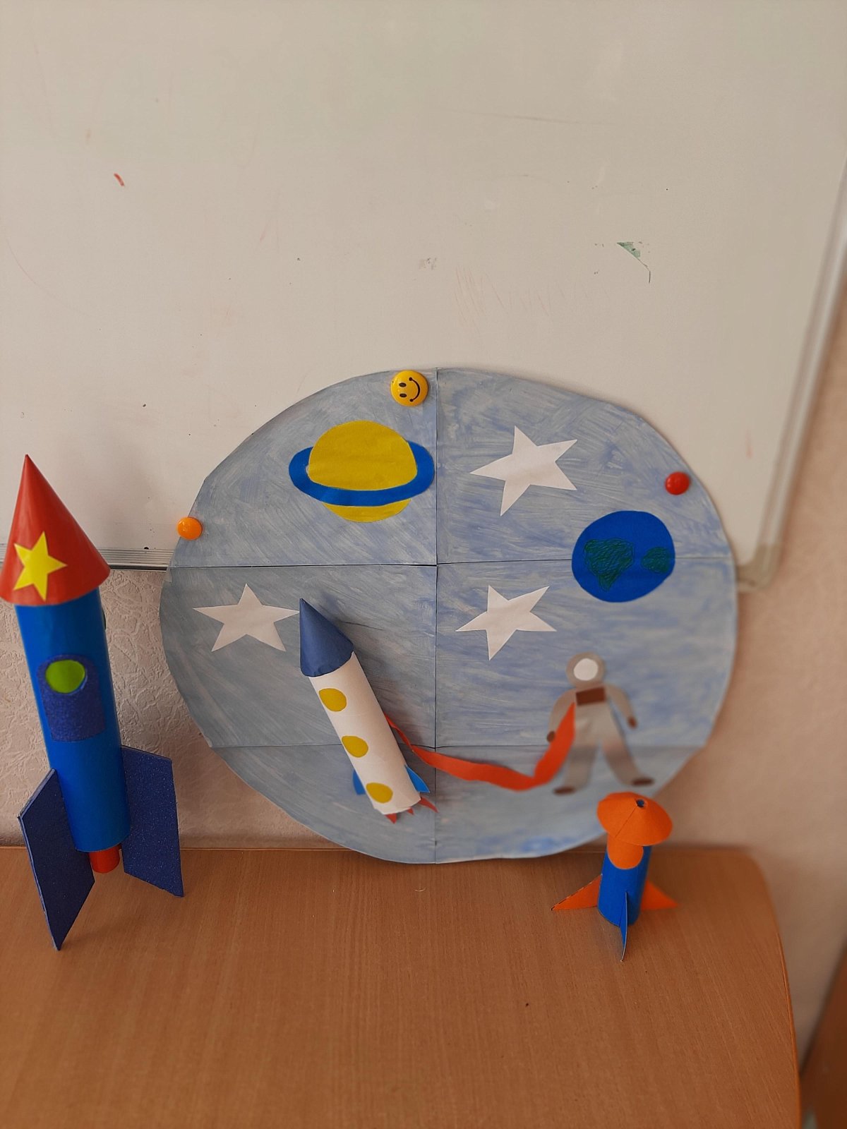 12 апреля вся страна отмечает День космонавтики .Этому знаменательному событию в нашем детском саду была посвящена неделя "Космос". В течении недели были проведены беседы, на которых ребятам рассказали о первом в мире покорителе космоса, о космическом снаряжении и питании космонавтов. Играли в дидактическую игру "Большое космическое путешествие с Незнайкой на луне". Знания, полученные в детском саду, дети закрепили в своих творческих работах, они рисовали, лепили и делали поделки.