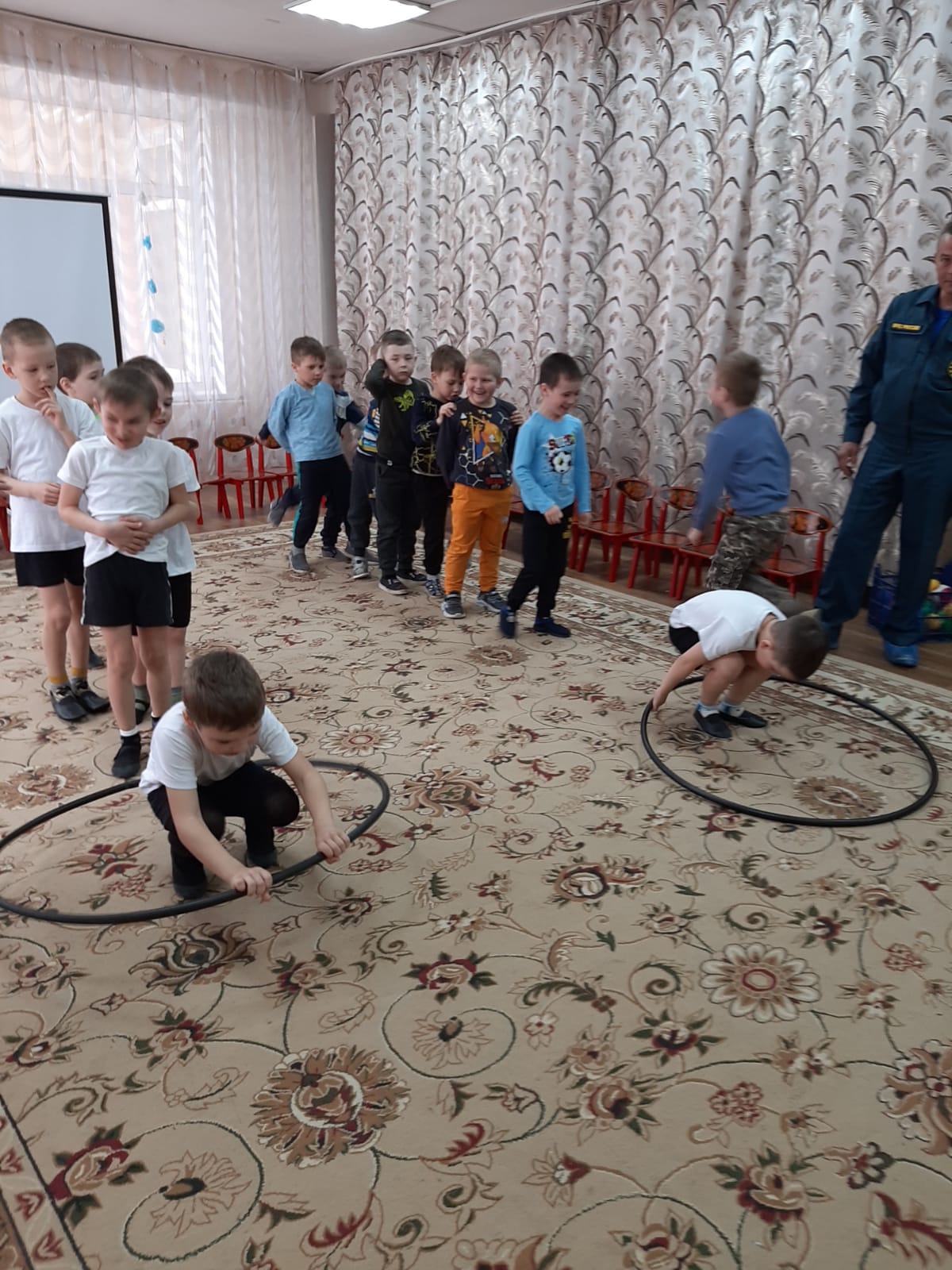 Ребята подготовительных групп продемонстрировали свою ловкость ,смекалку и знания в спортивных состязаниях ,посвящённые пожарной безопасности.