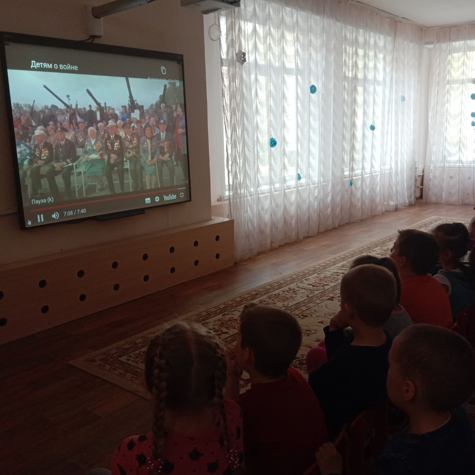 Ребятам старших и подготовительных групп показали презентацию и видео - фильм , посвящённый Великой Отечественной войне.