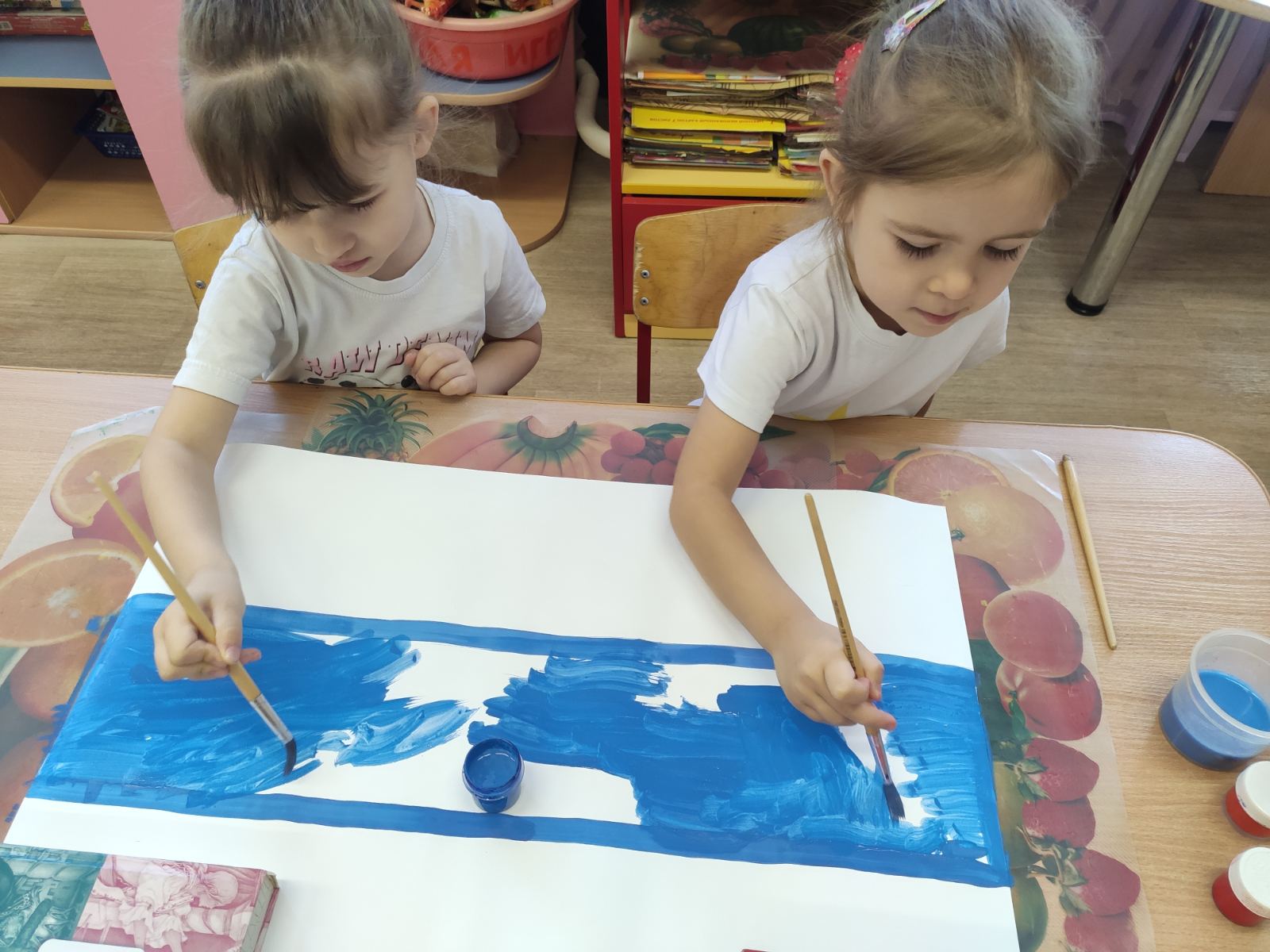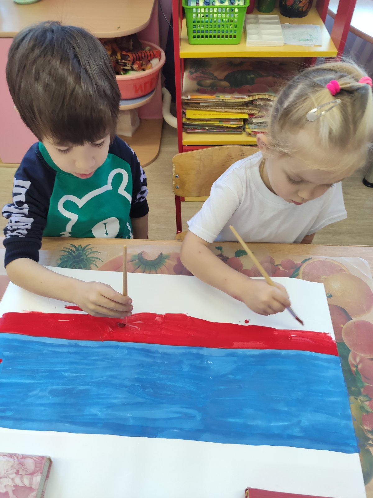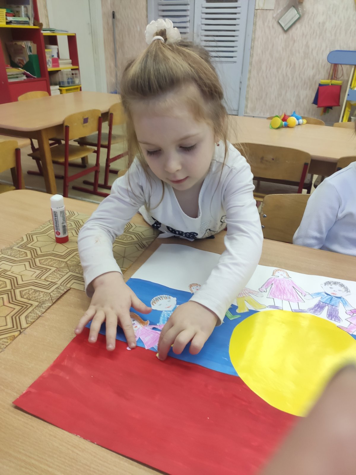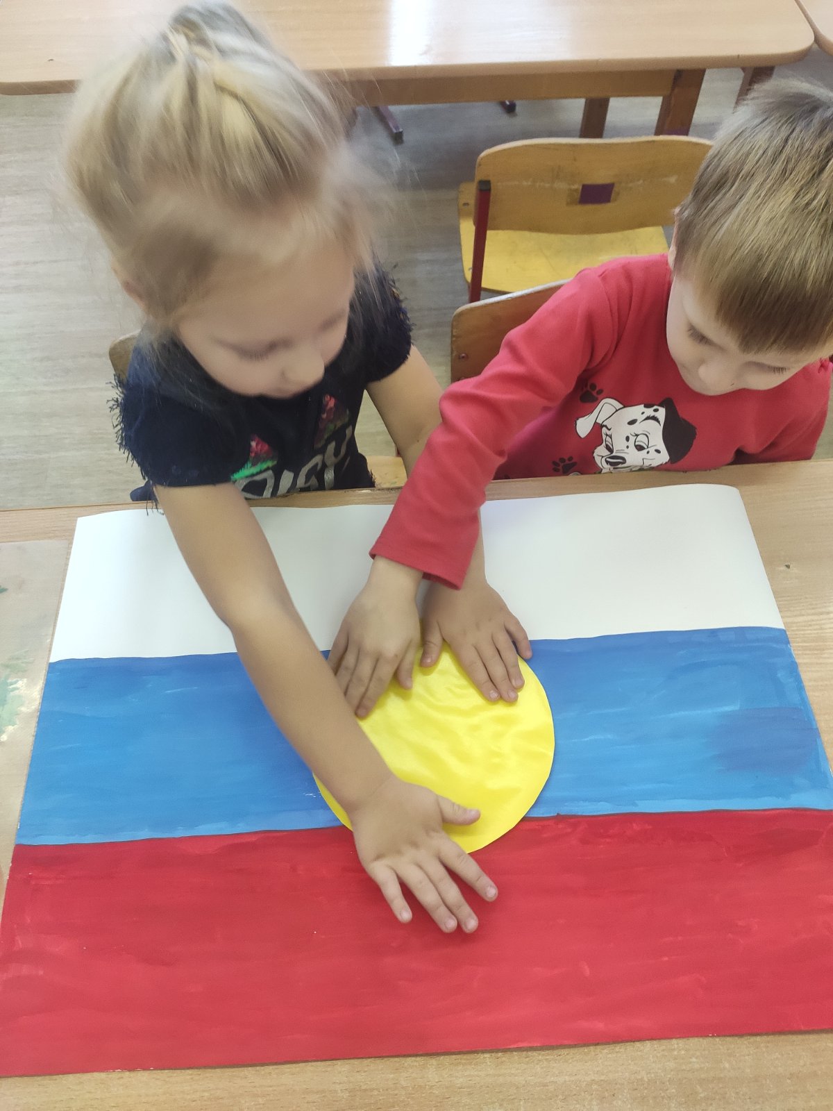 Итогом тематической недели в группе "Ладушки" (воспитатель - Скуднова Т.Н.) стала коллективная работа «Наша родина – Россия», в которой каждый из ребят оставил свою частичку.