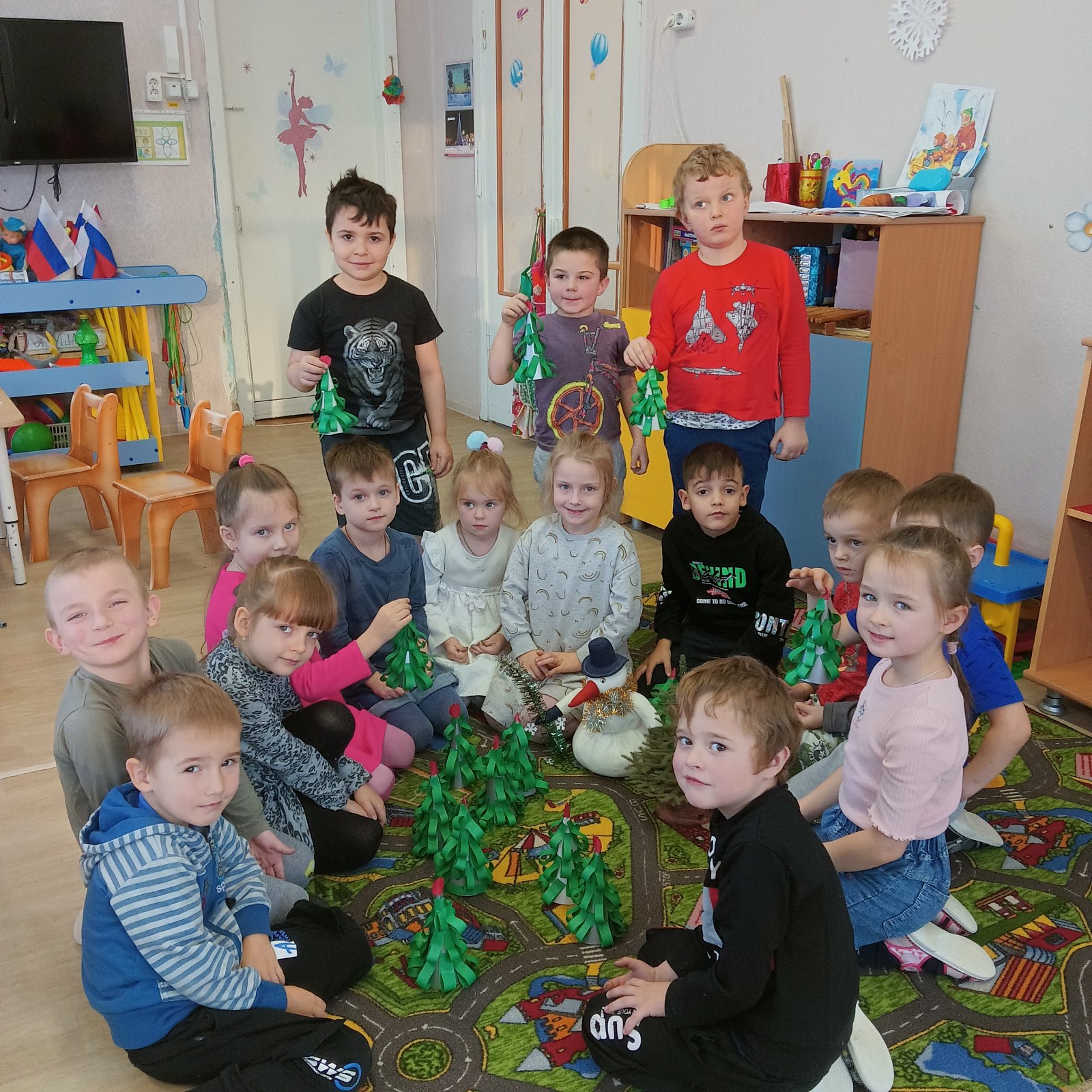 15 декабря в группе "Мотылёк" прошло интересное занятие по конструированию. К ребятам в гости пришёл снеговик очень грустный. Лесных зверят очень много. И в ожидании Нового года каждый захочет нарядить свою ёлочку, но снеговик переживает, что ёлочек не хватит всем! И ребята решили помочь снеговику, посмотрите, что у нас получилось!!!