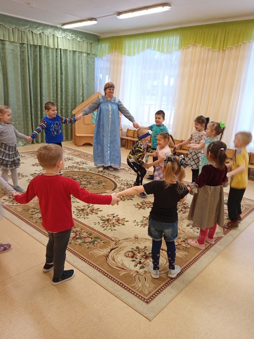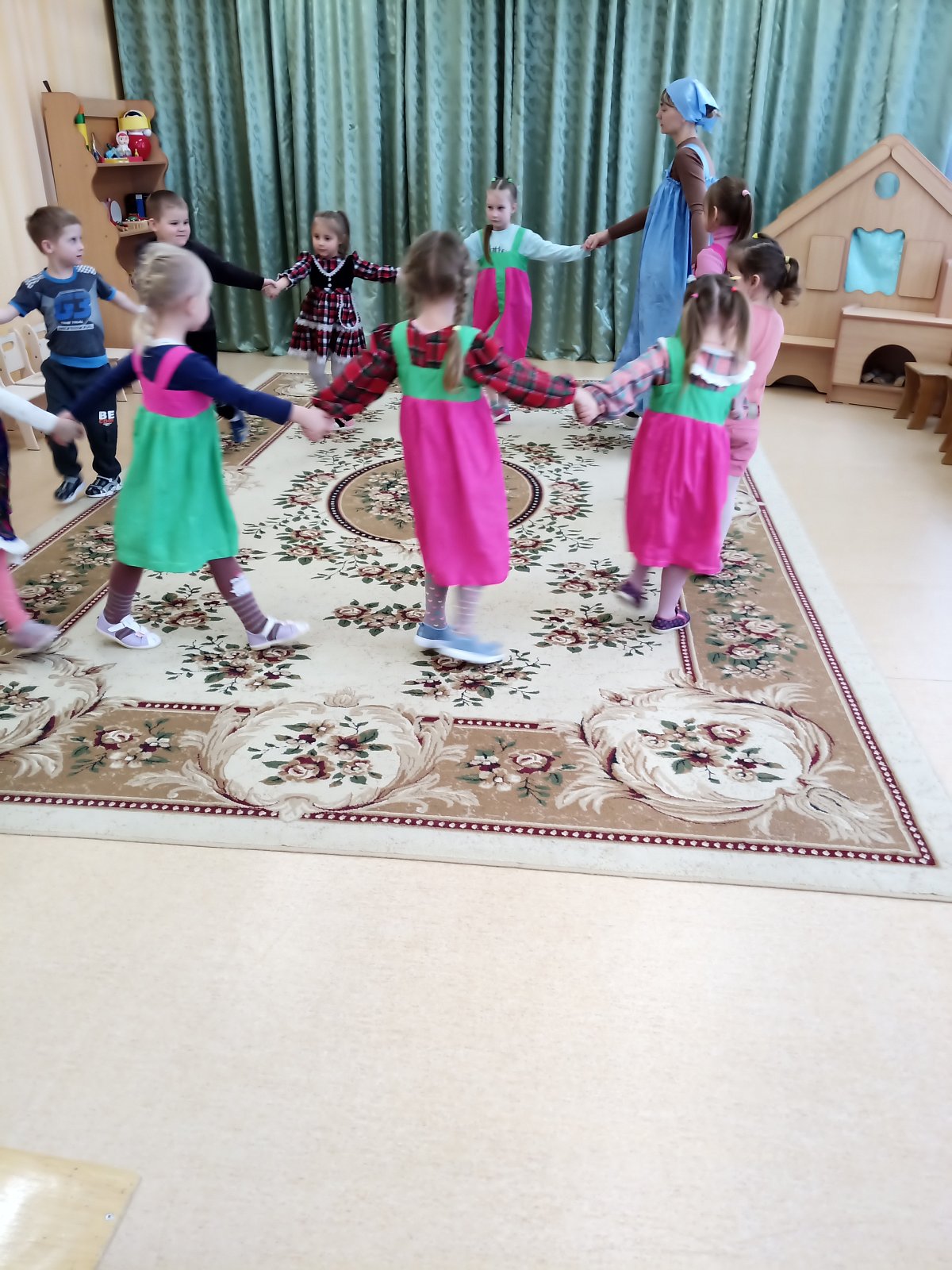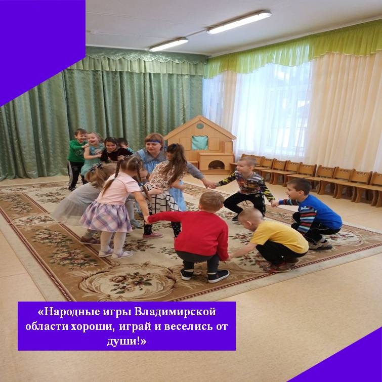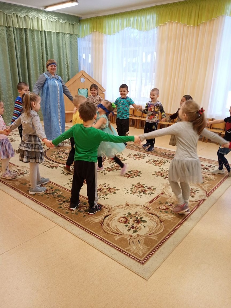 Мы стараемся возродить исконно русские традиции. 20 января в пятницу в старшей группе "Теремок-2" и "Солнышко-2" прошло мероприятие "Русские народные игры Владимирской области". Ребята познакомились с играми, в которые играли наши предки. Это "Горелки", "Золотые ворота", "Пирог", "Баба Яга". И все игры закончились русским народным танцем - хороводом.