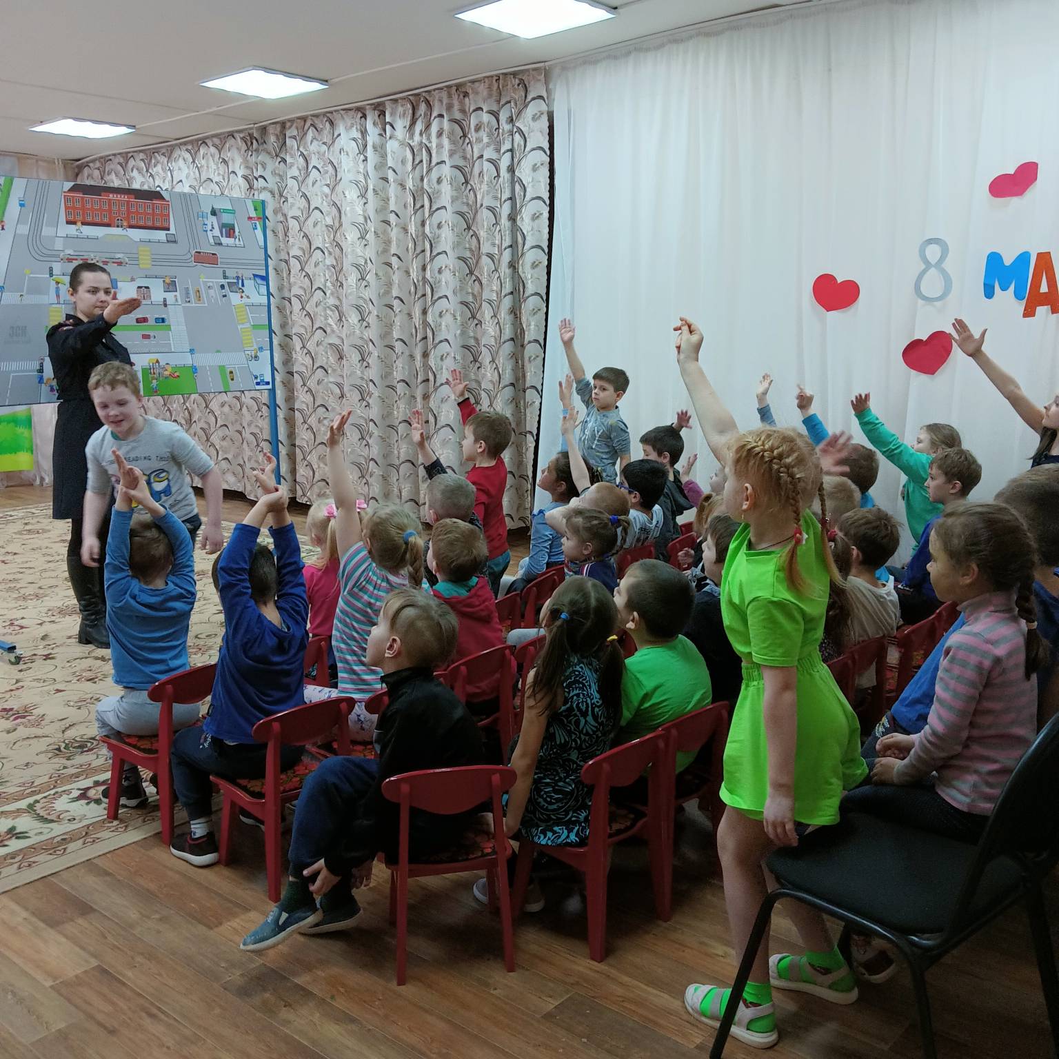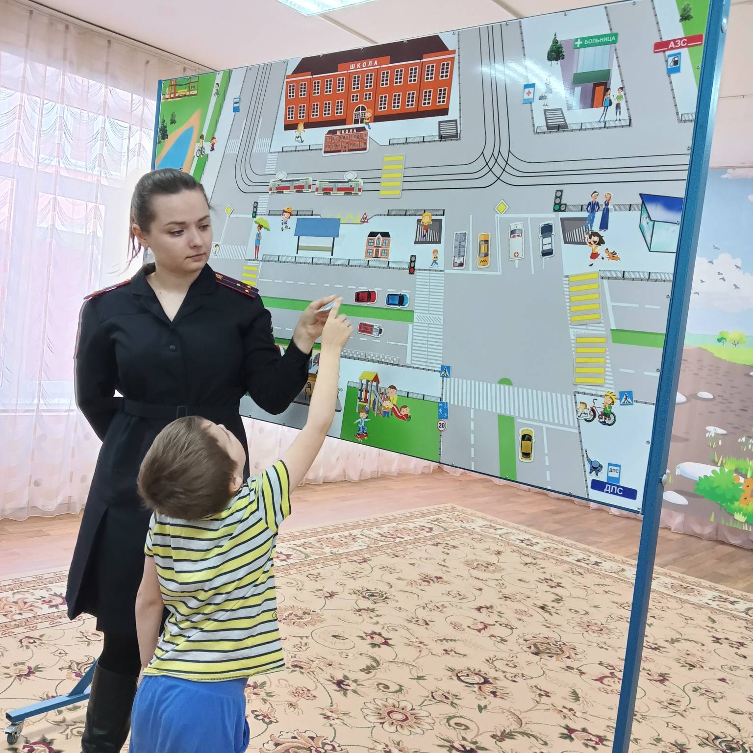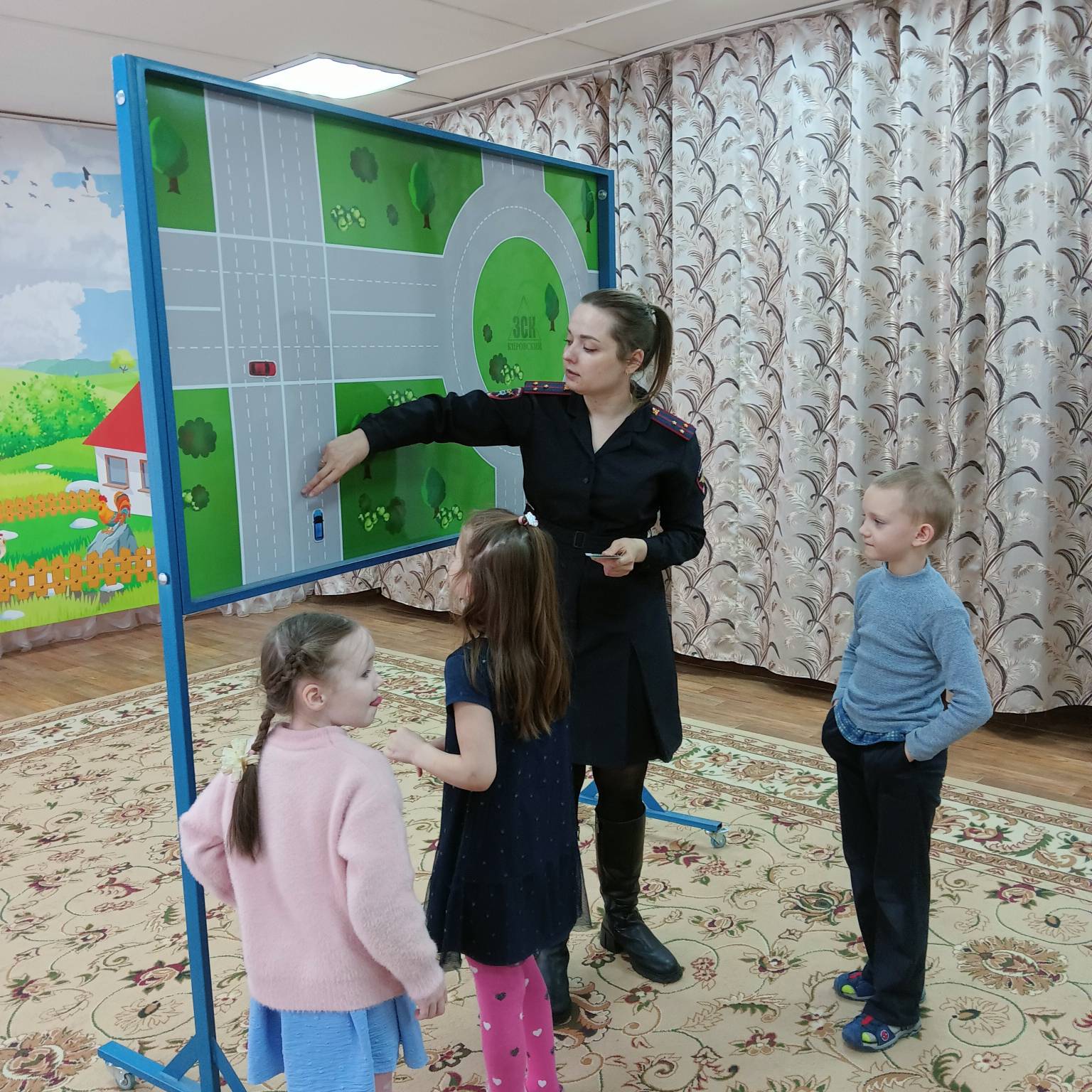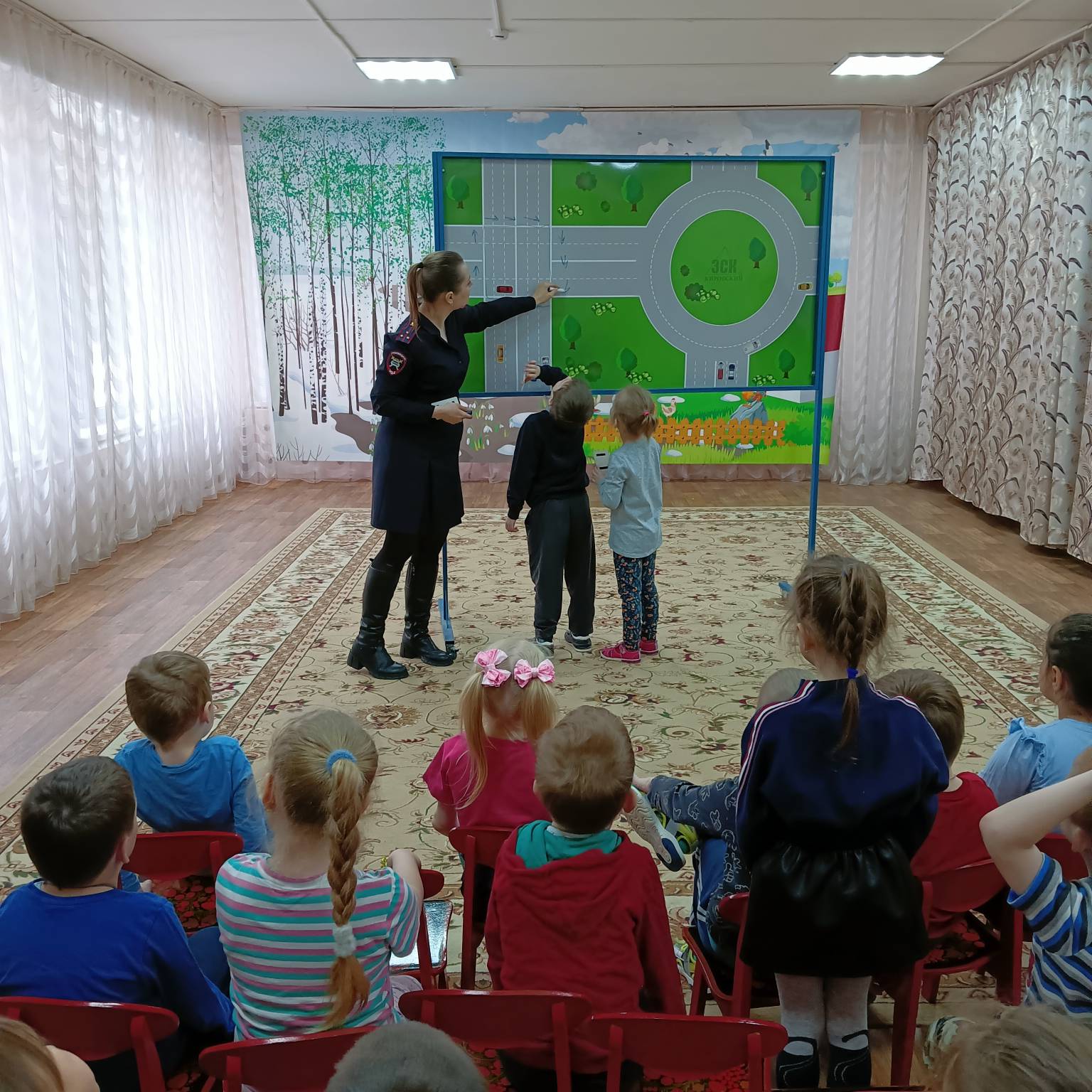 В рамках профилактических мероприятий, 16 марта 2023 года инспектор ГИБДД посетила наших дошколят подготовительных групп «Ласточка» и «Золотая рыбка», где в игровой форме используя переносной макет города, провела занятие по изучению улично-дорожной сети. Ребята с интересом приняли участие в правильной организации дорожного движения, тем самым повторили основные дорожные знаки, сигналы светофора и правила безопасного поведения.