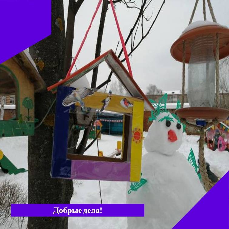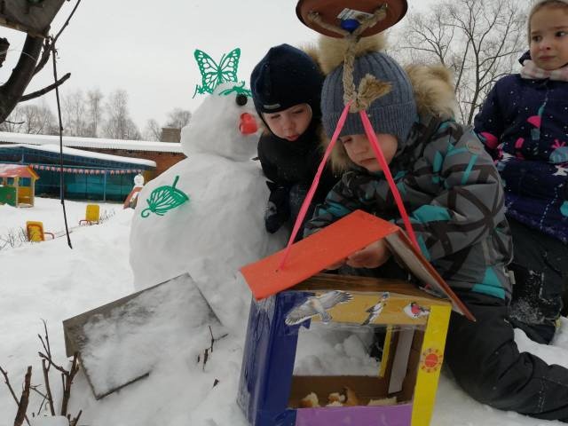 Им кормушки смастерили. Прилетайте, птички, к нам.