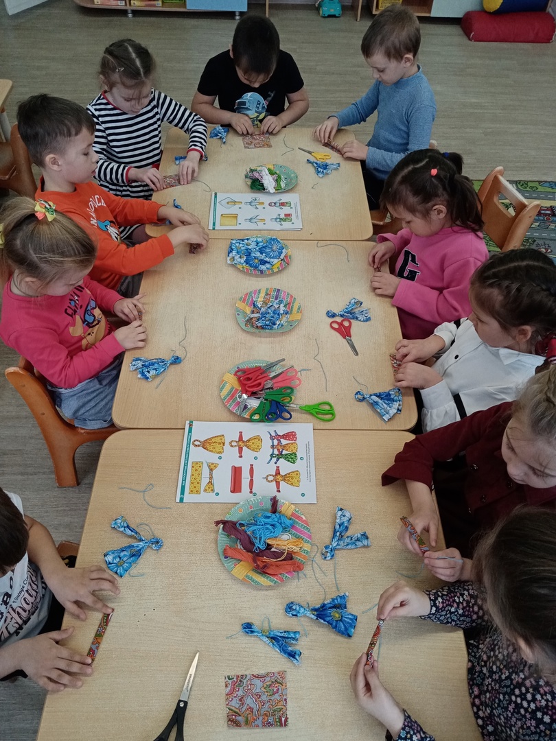 Вот и наши дети, воспитанники подготовительной группы «Ласточка» захотели сами изготовить куклу-оберег. Во время выполнения работы дети помогали друг другу и с огромной гордостью демонстрировали своих кукол.