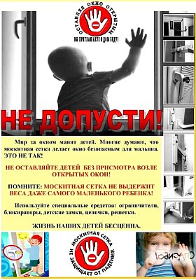 Не оставляйте детей без присмотра. Помните! Открытое окно - опасность для ребёнка.