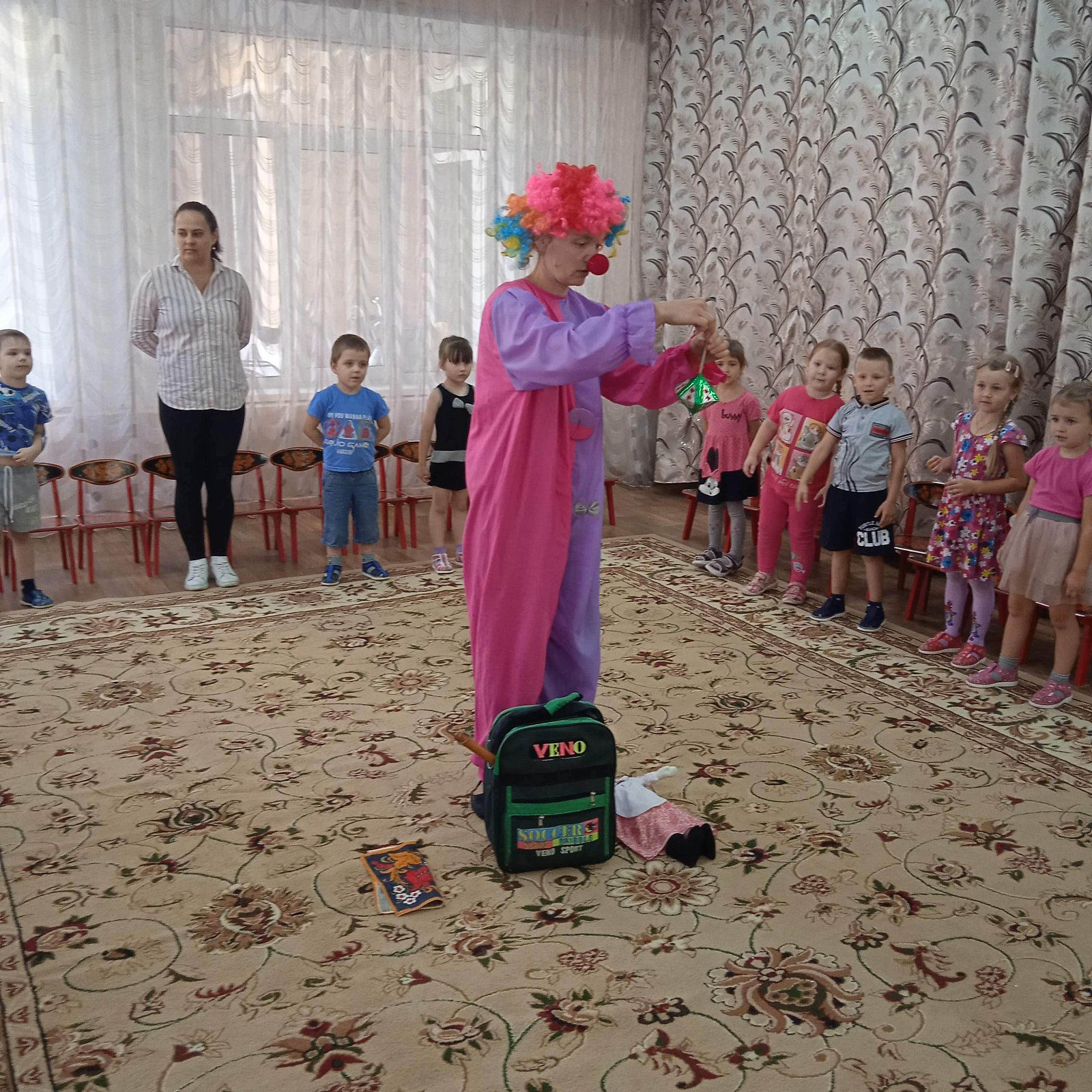 С радостного и веселого приветствия начался праздник. А с появлением клоуна началось настоящее веселье!
