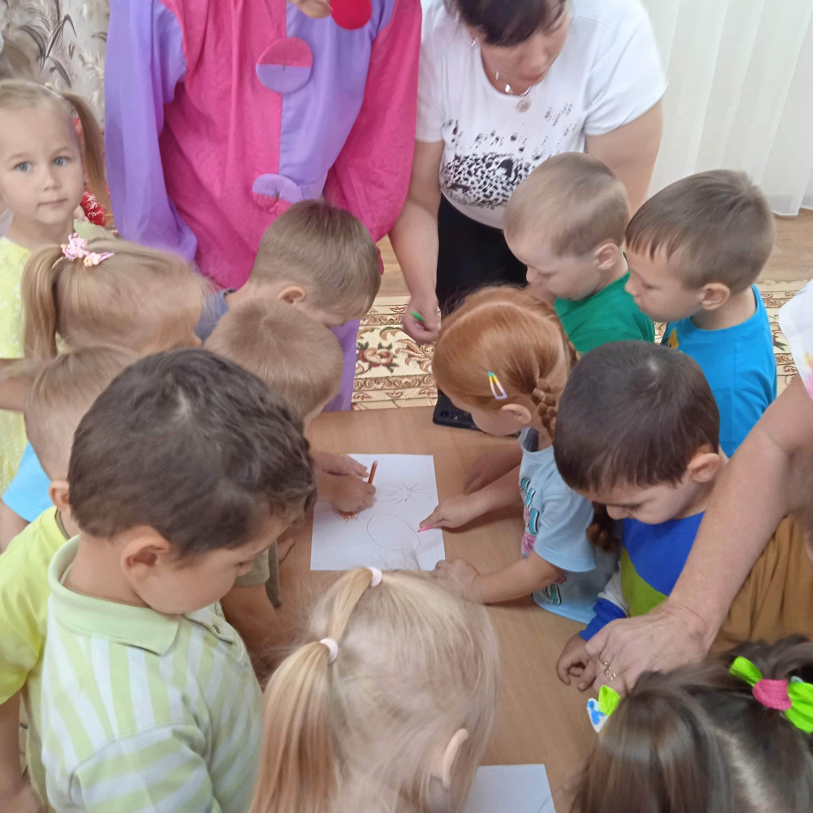 За лето наши дети подросли, окрепли и повзрослели. А сегодня по особенному радовались и хорошей погоде, и встрече с озорным клоуном Тимошкой.