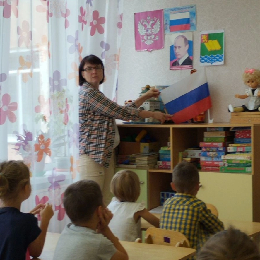 В группе "Мотылёк" было проверено тематическое занятие "Флаг- главный символ страны". Ребята в творческой обстановке слушали рассказ воспитателя о значимости флага для страны.
