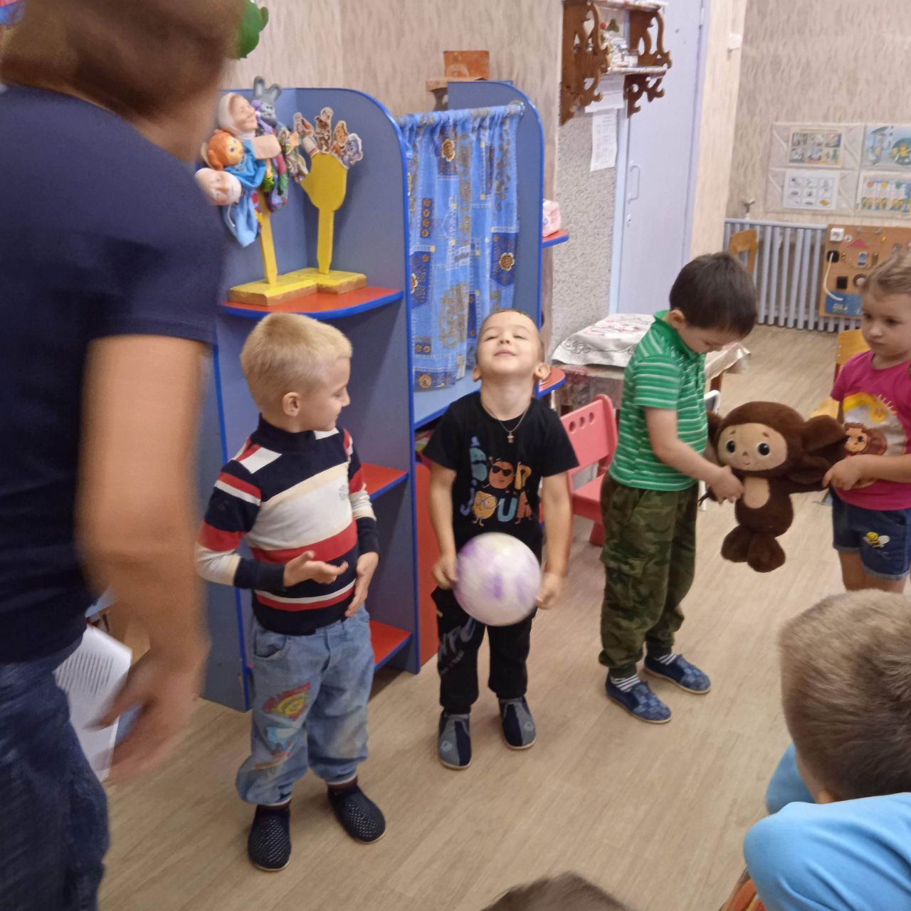 Сегодня снова к ребятам старшей группы "Ладушки" заглянул в гости Чебурашка. Он пришёл с большой просьбой, просит ребят помочь ему научиться вести себя на улицах города, как и где правильно переходить дорогу, что означают знаки на дороге. Итак, мы вместе с Чебурашкой отправились в маленькое путешествие на автобусе. Первая наша остановка называлась "Путешествие в историю". Мы узнали, на чем передвигались люди очень давно в далёком прошлом, когда ещё не придумали автомобилей, не было автобусов и поездов. Прочитали стихотворение С. Михалкова "От кареты до ракеты". Вторая наша остановка "Светофор". Дети послушали "Сказку о заветных огоньках". Все наши, ребята знают, для чего на улицах нужен светофор. Следующая остановка "Загадки о дорожных знаках". Оказалось, что не все ребята знают дорожные знаки и что они означают. Но все вместе, дружно мы справились с заданием, отгадали все загадки. Затем все вместе поиграли в игру "Ответь правильно" на закрепление ПДД. И теперь Чебурашка спокоен, он знает, что такое улица, как себя вести на улице, знает дорожные знаки, которые могут встретиться ему на пути. А на прощание поиграли в веселую музыкальную игру "Автомобили".