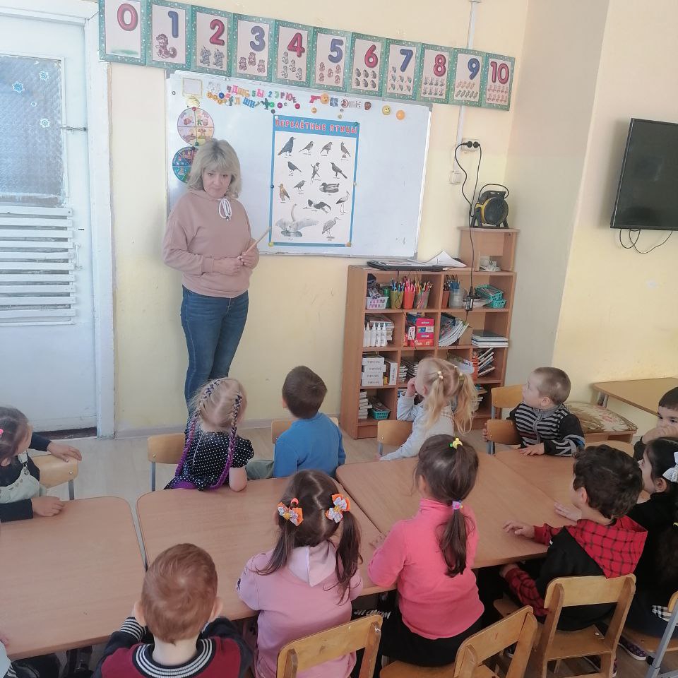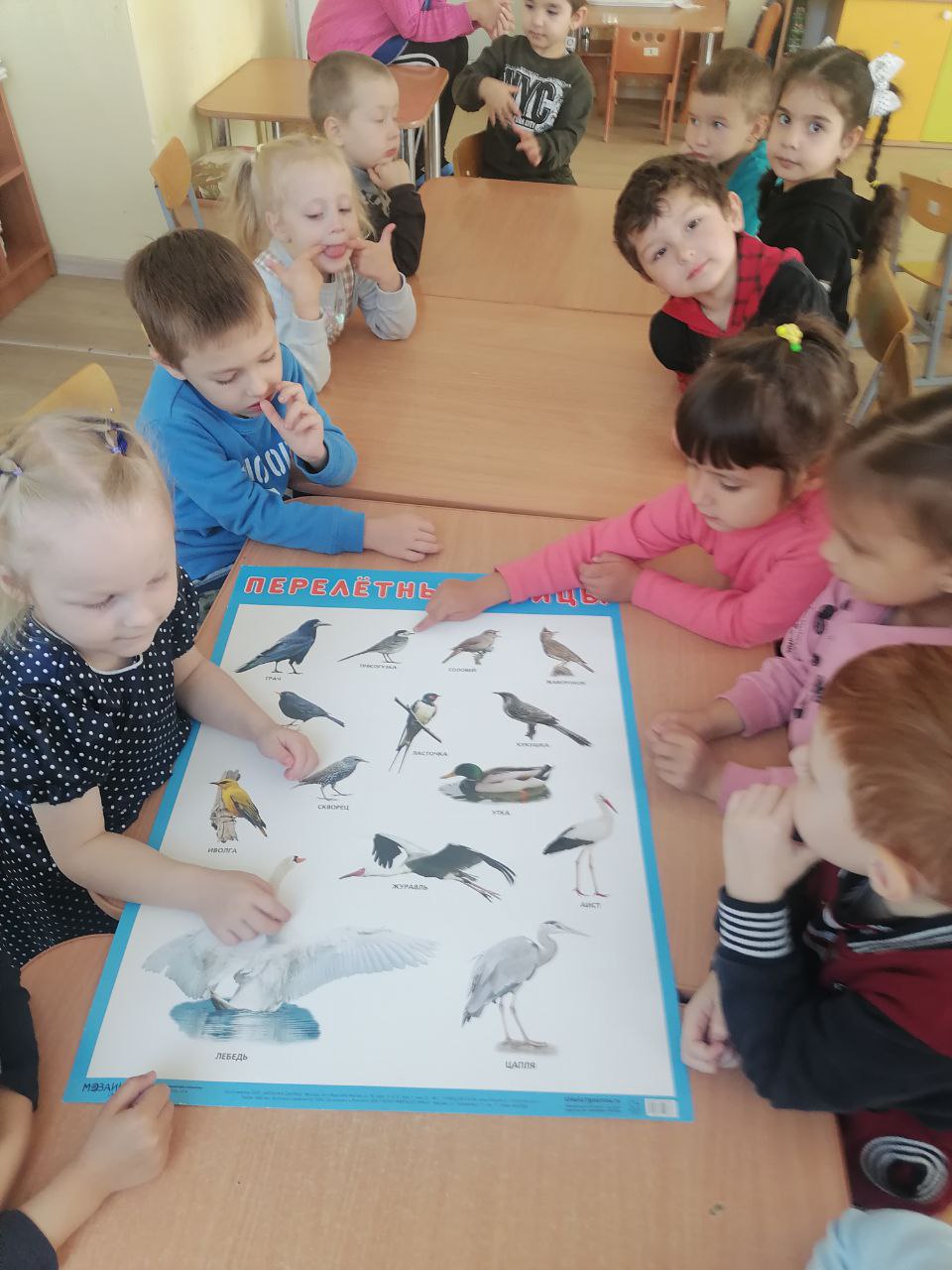В средней группе "Дружная семейка" прошло занятие по познавательно-речевому развитию на тему: "Перелётные птицы", целью которым было: формирование представлений о внешнем виде, образе жизни и повадках перелётных птиц. На занятии мы с детьми отгадывали загадки, рассматривали иллюстрации, играли в разные игры: "У кого кто?"(учились правильно называть птенцов, "будь внимателен", "скажи одним словом", делали физкультминутку, выполняли задания: дорисовывали части тела птиц, помогли домашним птицам найти своих мам, пройдя через лабиринт. Наше занятие прошло познавательно и очень интересно. Детям понравилось, они обещали уважительно и бережно относиться к окружающему миру.