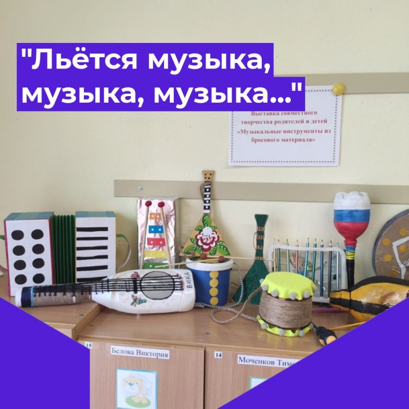 В нашем детском саду прошла неделя музыки. Дети знакомились с различными жанрами музыки, музыкальными инструментами. В группе "Ладушки" состоялась выставка совместного творчества родителей и детей музыкальных инструментов из подручного и бросового материала. И у нас получился замечательный оркестр!