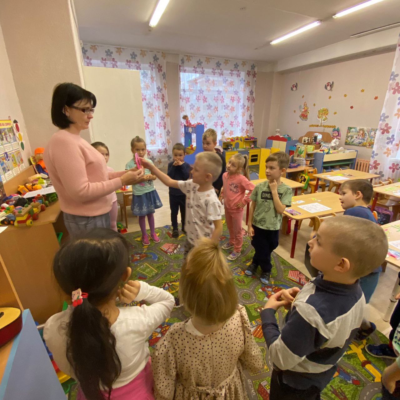Воспитатель познакомила с новой буквой и звуком "О". Давала разнообразные виды заданий на выделение звука из слов, определение места звука в слове.