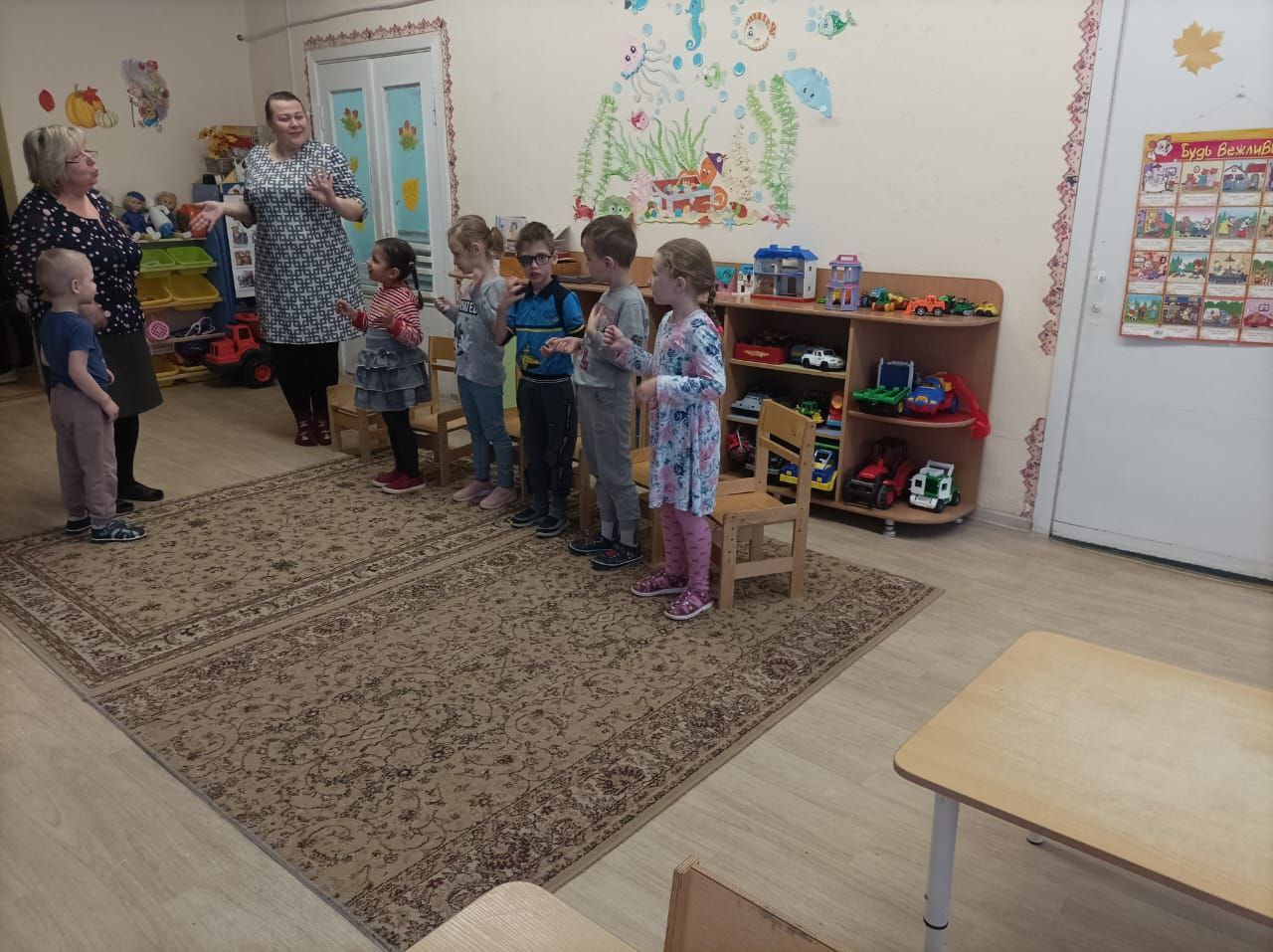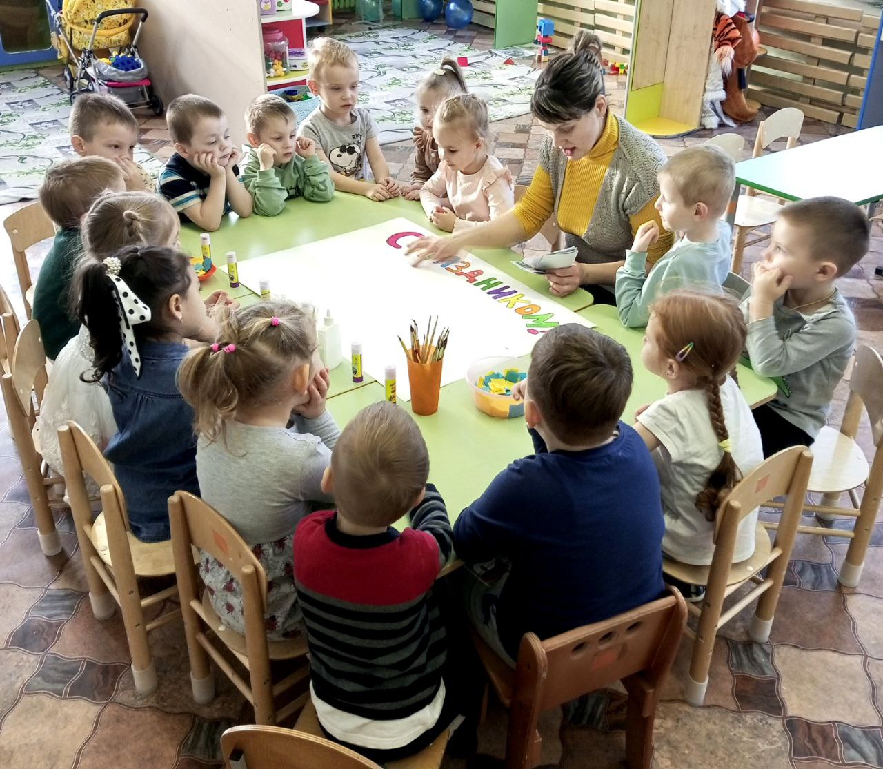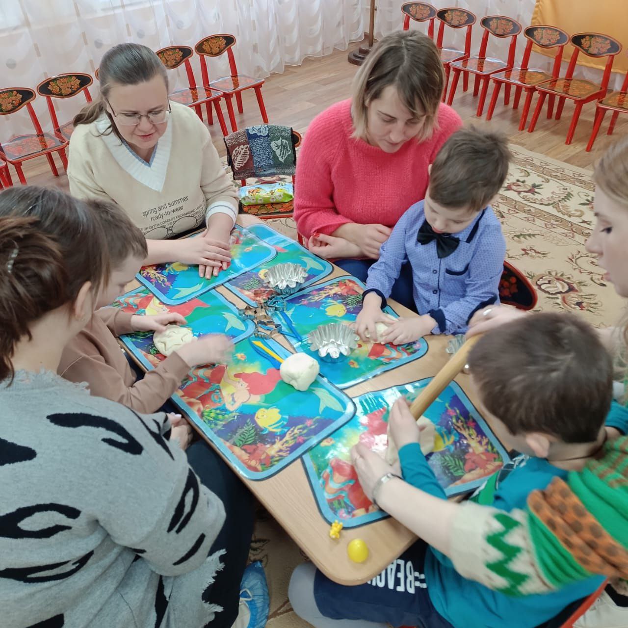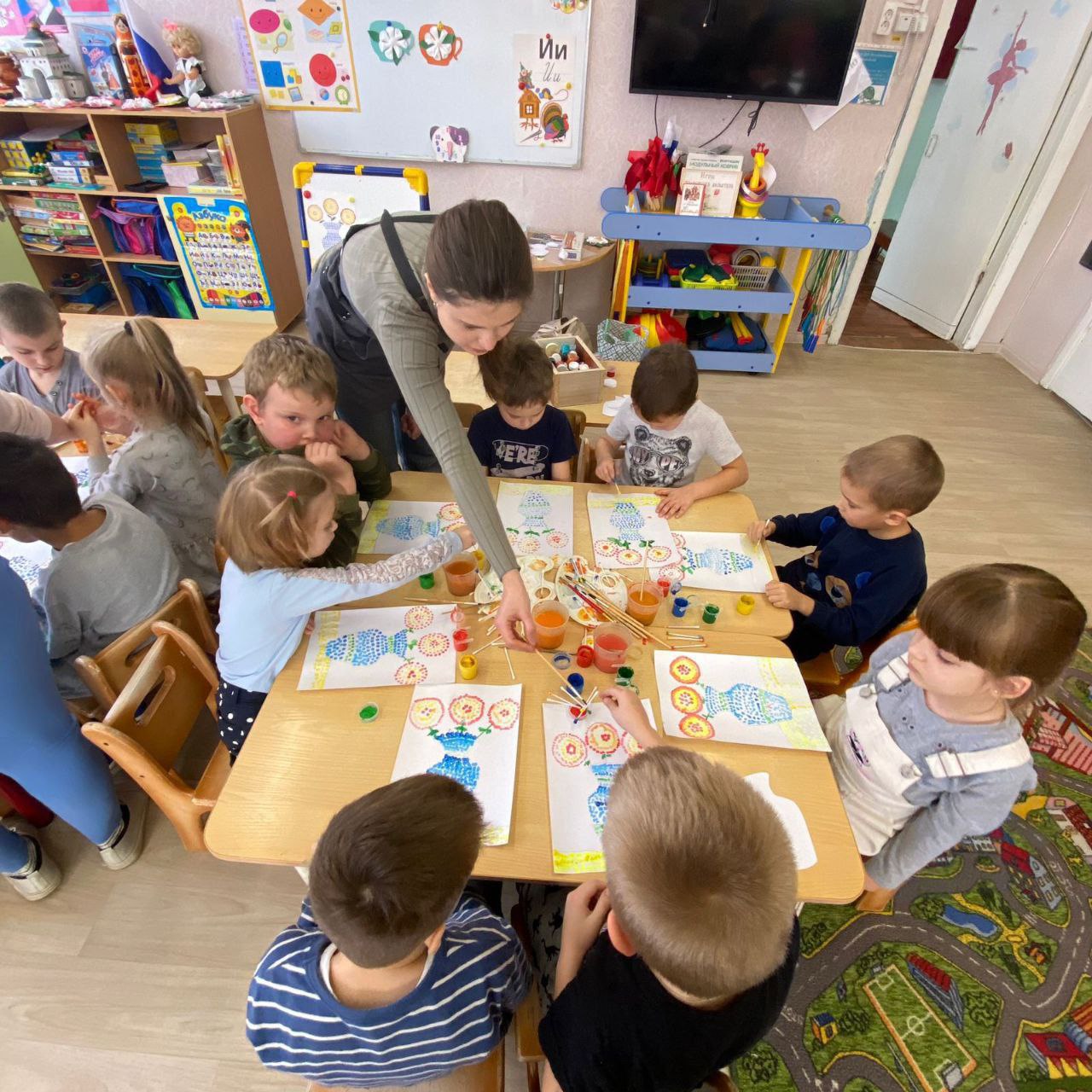 - группу "Золотая рыбка" порадовали своим мастерством Сенкевич Ю.В - "Необычные подарки - картины" в технике набрызг, Анисимова С.В. с мастер-классом "Петь чудесно и полезно".