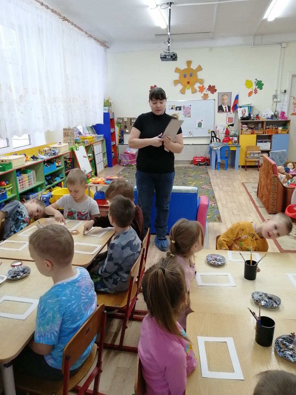 - в группе "Сказка" мама Жирнова Т. Ф. провела мастер - класс по украшению фото-рамок с помощью пазлов;