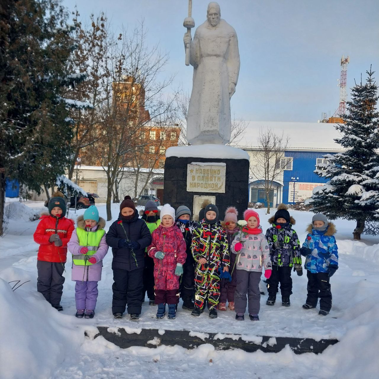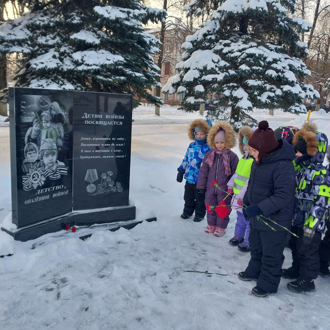 Группа "Ромашка" совершили экскурсию к памятнику "Неизвестному солдату". Ребята почтили память погибших минутой молчания, прочитали стихи. Воспитатель провел с детьми беседу на тему: «Вечная память». В завершение экскурсии наши воспитанники возложили к мемориалу живые цветы.