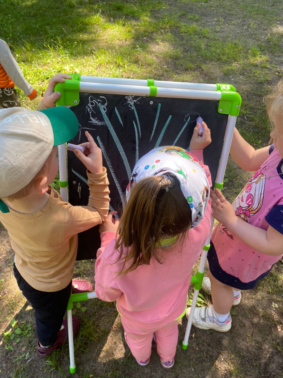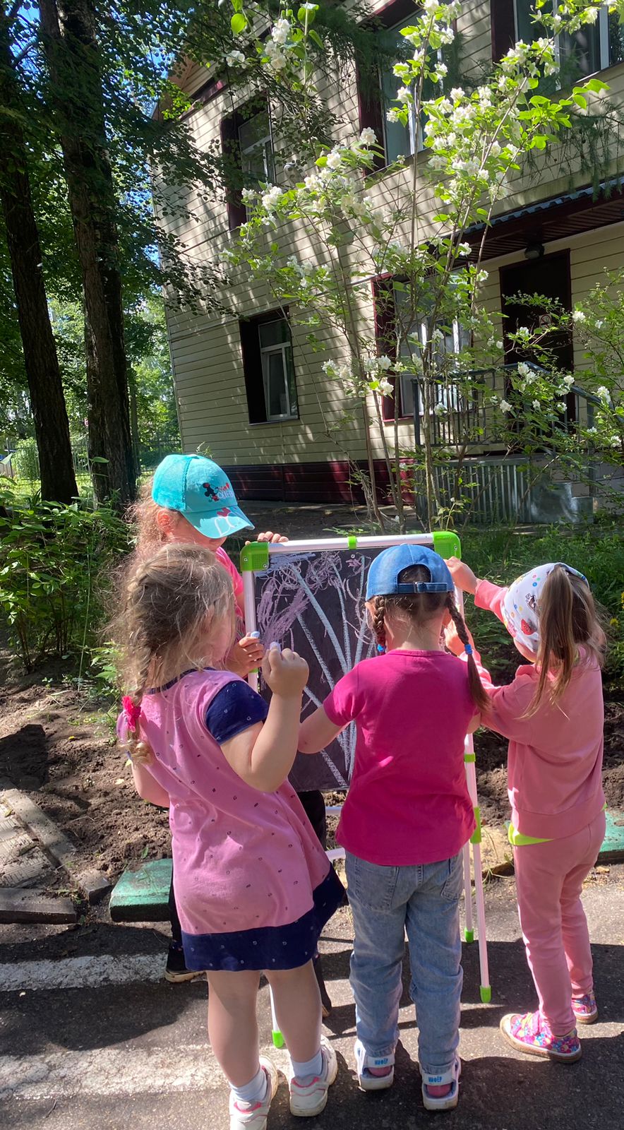 В один прекрасный жаркий день, наши воспитанники превратились в настоящих художников. Детской фантазии не было предела! Ребята рисовали мелками, карандашами красками, даже попытались изобразить на мольберте цветущий Жасмин с нашей территории детского сада. Возможно, именно наши воспитанники детского сада станут настоящими известными художниками!!! (Материал подготовила Горбунцова Е.П,)