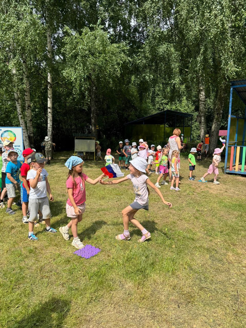 В нашем саду прошёл физкультурный праздник, посвящённый нашей Родине, нашему городу. Участниками праздника стали ребята старших и подготовительных групп. Спортивное мероприятие началось с беседы о символах России (флаг, герб, гимн) и игрой "Это Родина моя!!!"