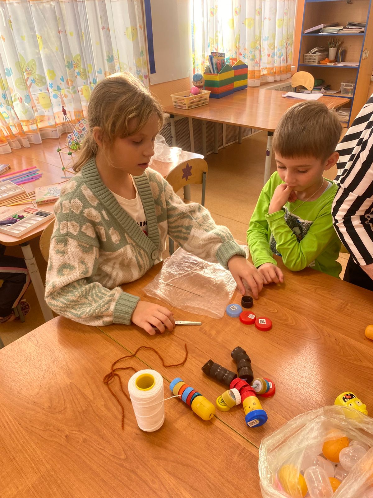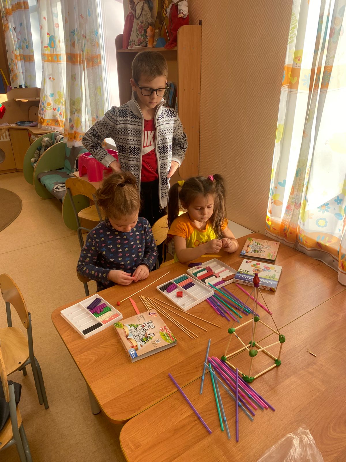 В нашу группу «Аленушка» пришли гости из МБОУСОШ 1 учащиеся 3 «а» класса. Провели у нас занятие по конструированию, научили ребят использовать подручный материал для создания конструктора. Ребята остались довольны и с удовольствием унесли свои работы домой, обещая сделать еще и научить своих близких.