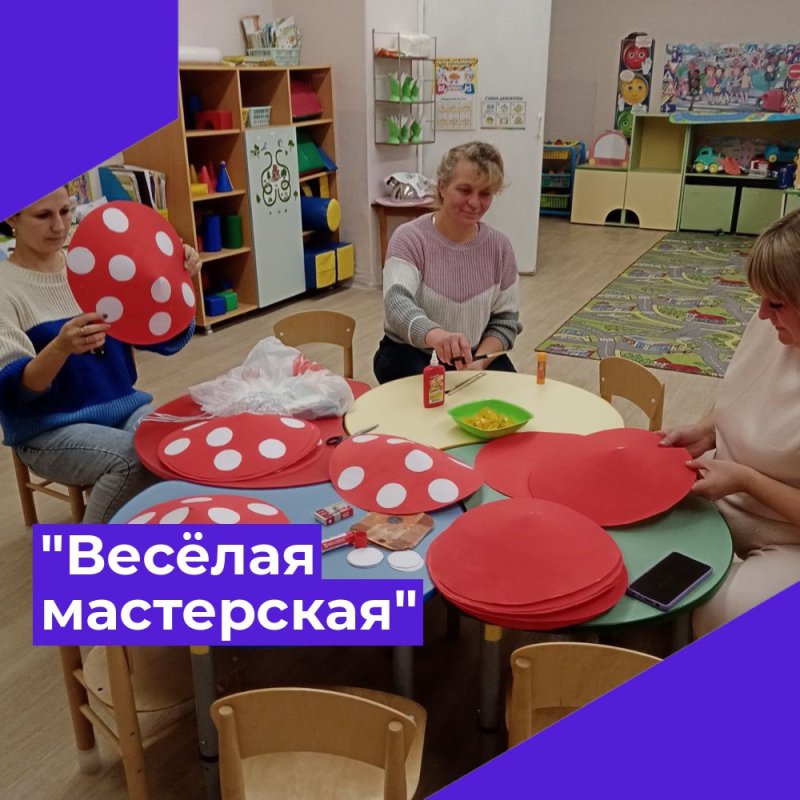 Осень, замечательная пора. В садах проходят осенние праздники. В преддверии праздника, в группе "Ласточка" прошёл мастер - класс с родителями " Весёлая мастерская ", по изготовлению атрибутов. Родители с удовольствием погрузились в творческий процесс и с вдохновением мастерили шапочки - мухоморы. Мероприятие прошло интересно и эмоционально.