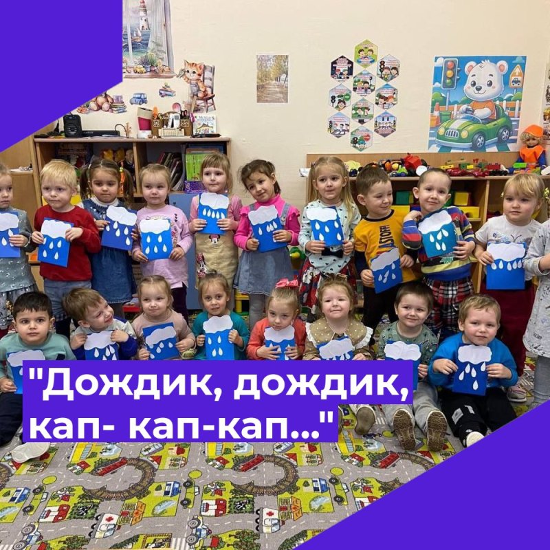 Осень дождливая пора, но воспитанники младшей группы "Мотылёк" не огорчаются и на занятии по аппликации выполнили работу "Дождик, дождик".