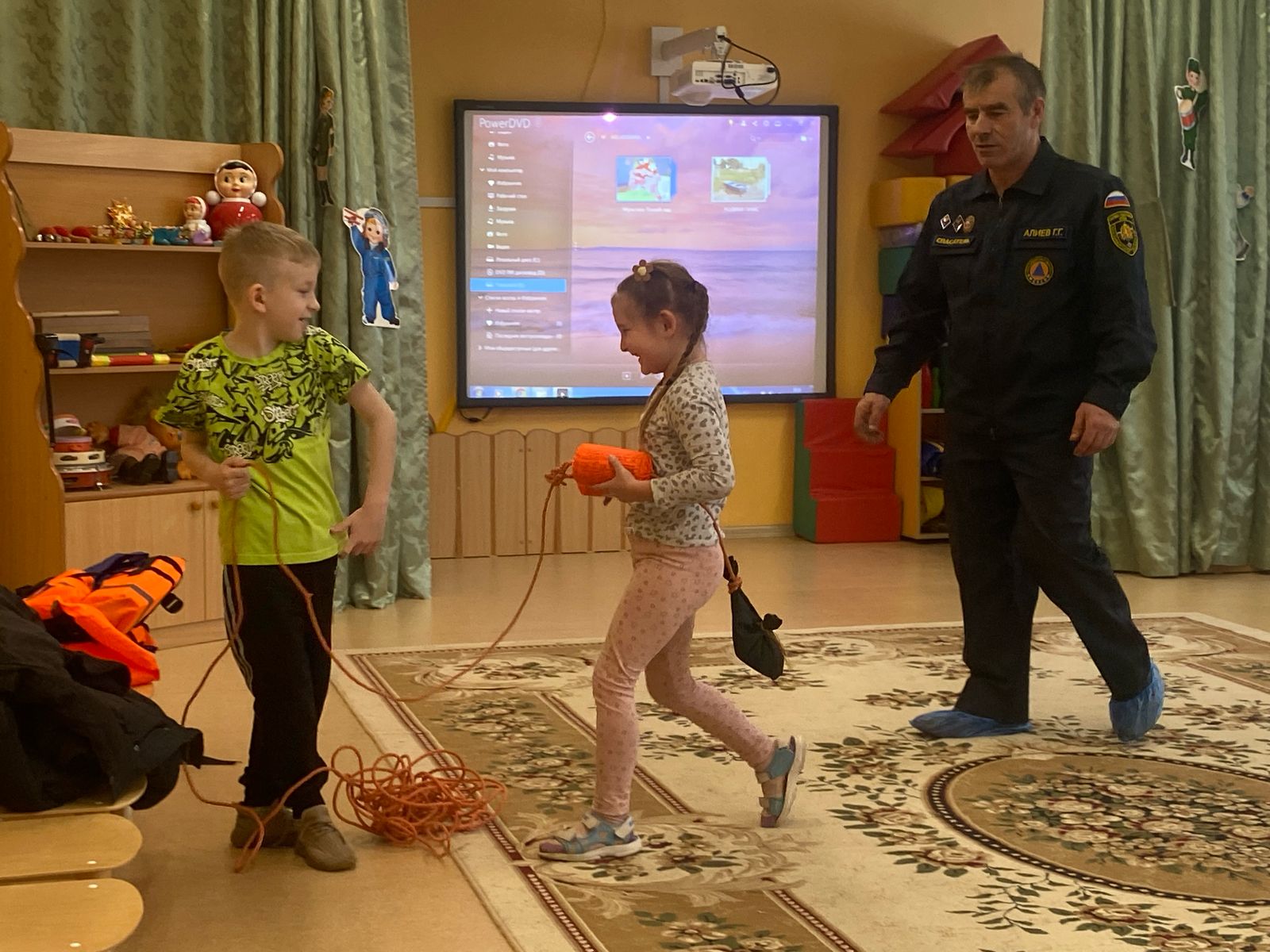 В группах "Говорушки" и "Алёнушка", в рамках профилактических мероприятий по безопасности на водных объектах в зимний период, прошла встреча с сотрудником МЧС Алиевым Гасаном Гасанбековичем. В ходе которой спасатель рассказал и показал, как действовать в чрезвычайных ситуациях на водоёмах в зимний период.