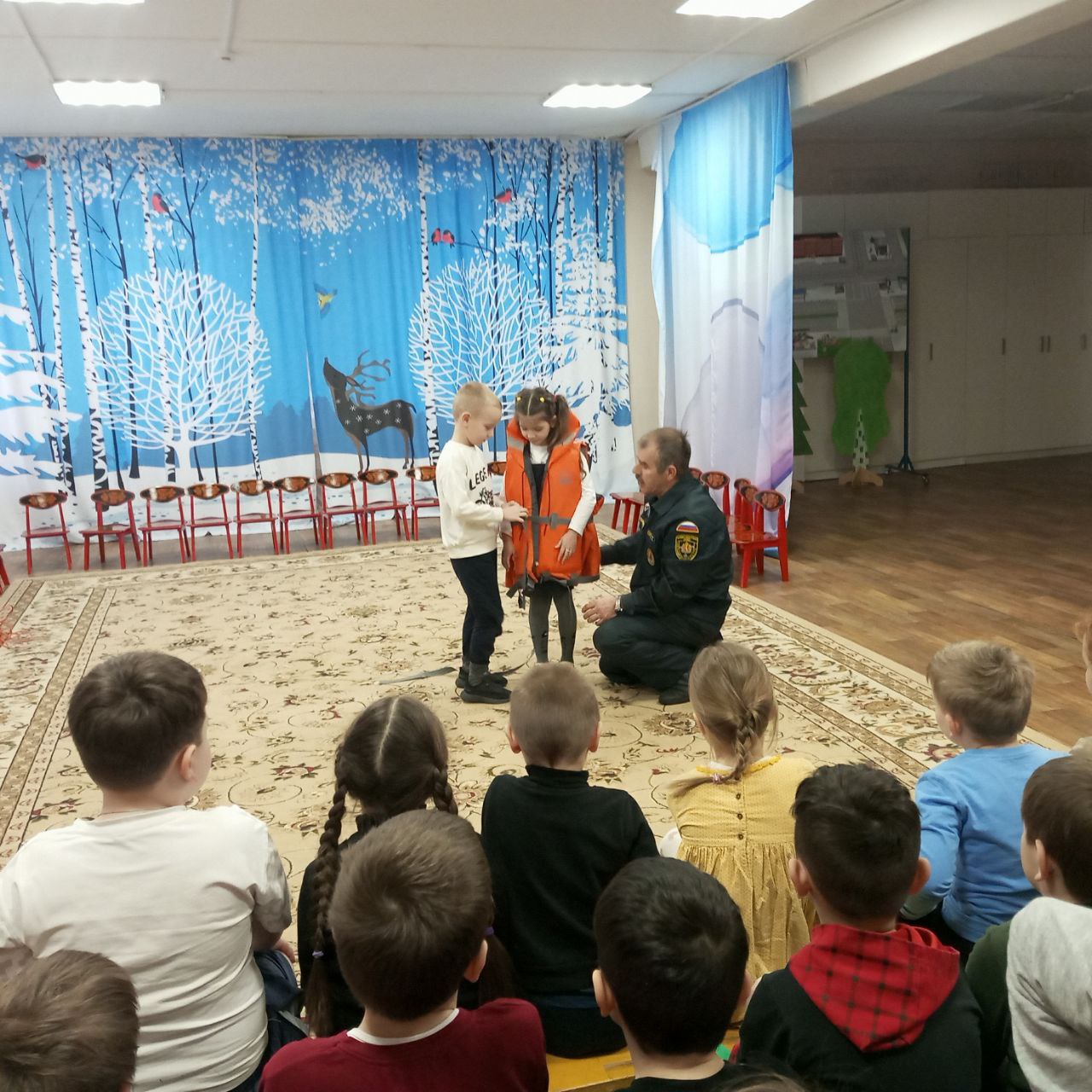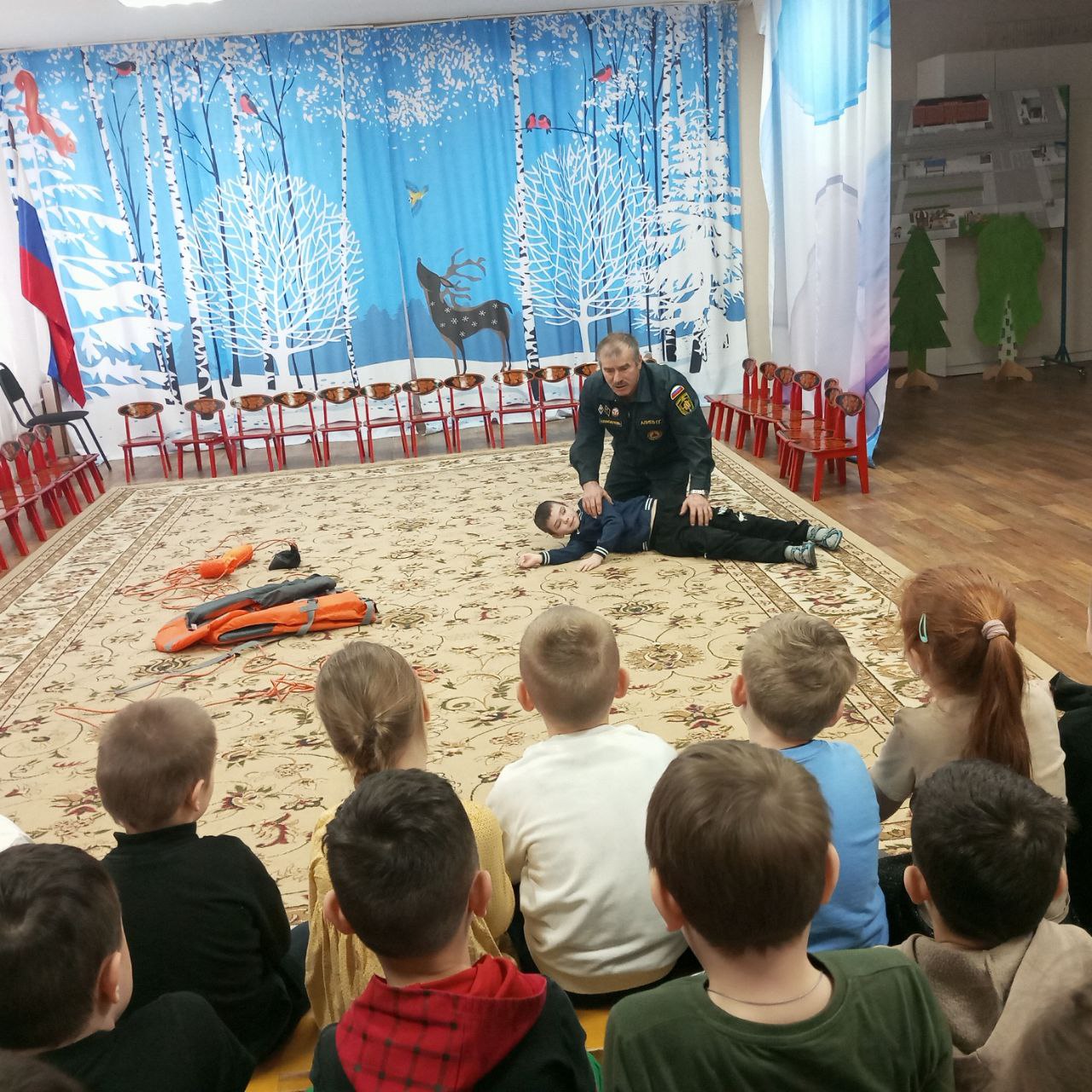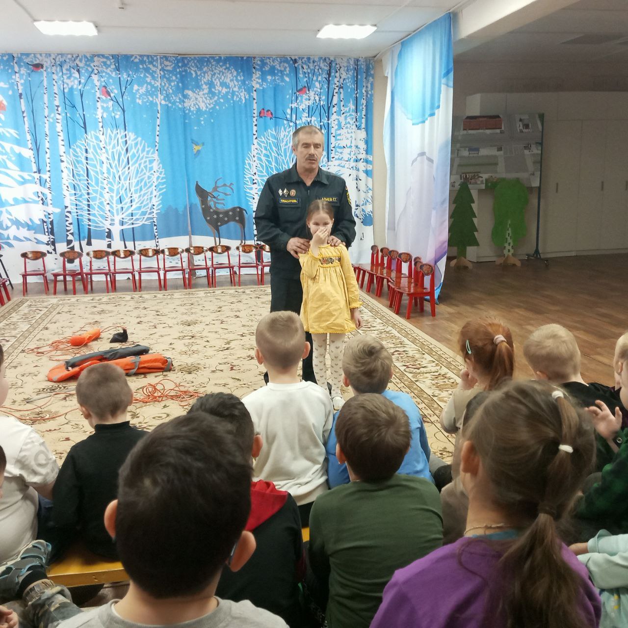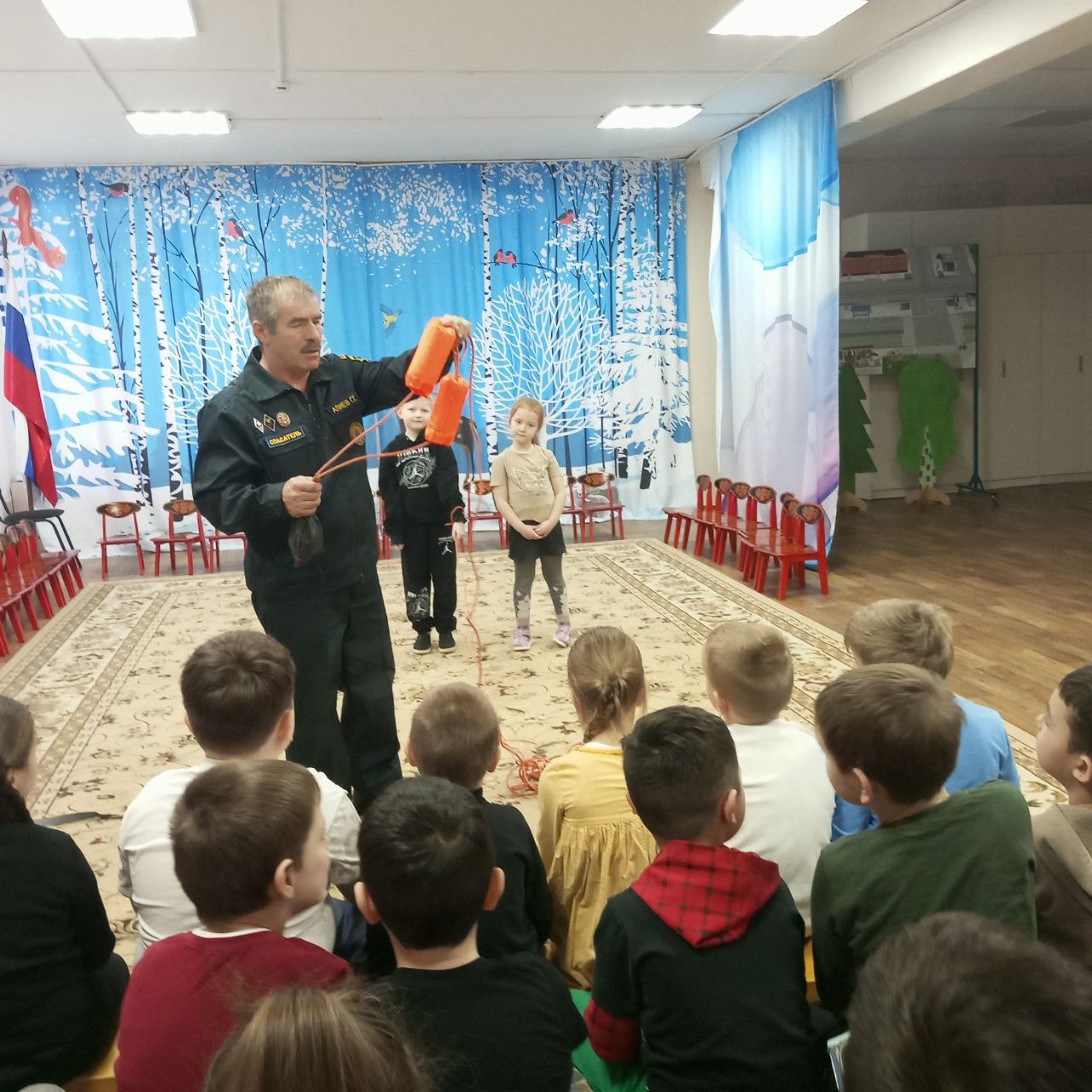 Спасатель рассказал дошколятам о правилах безопасности на водных объектах зимой.