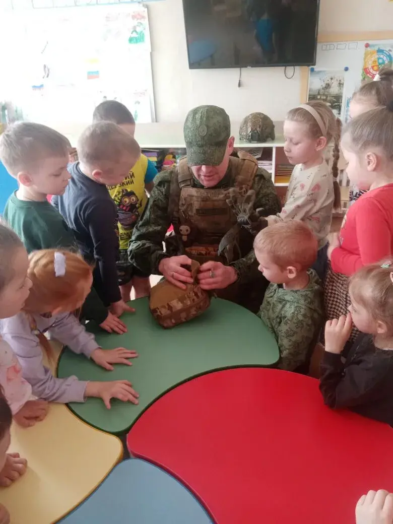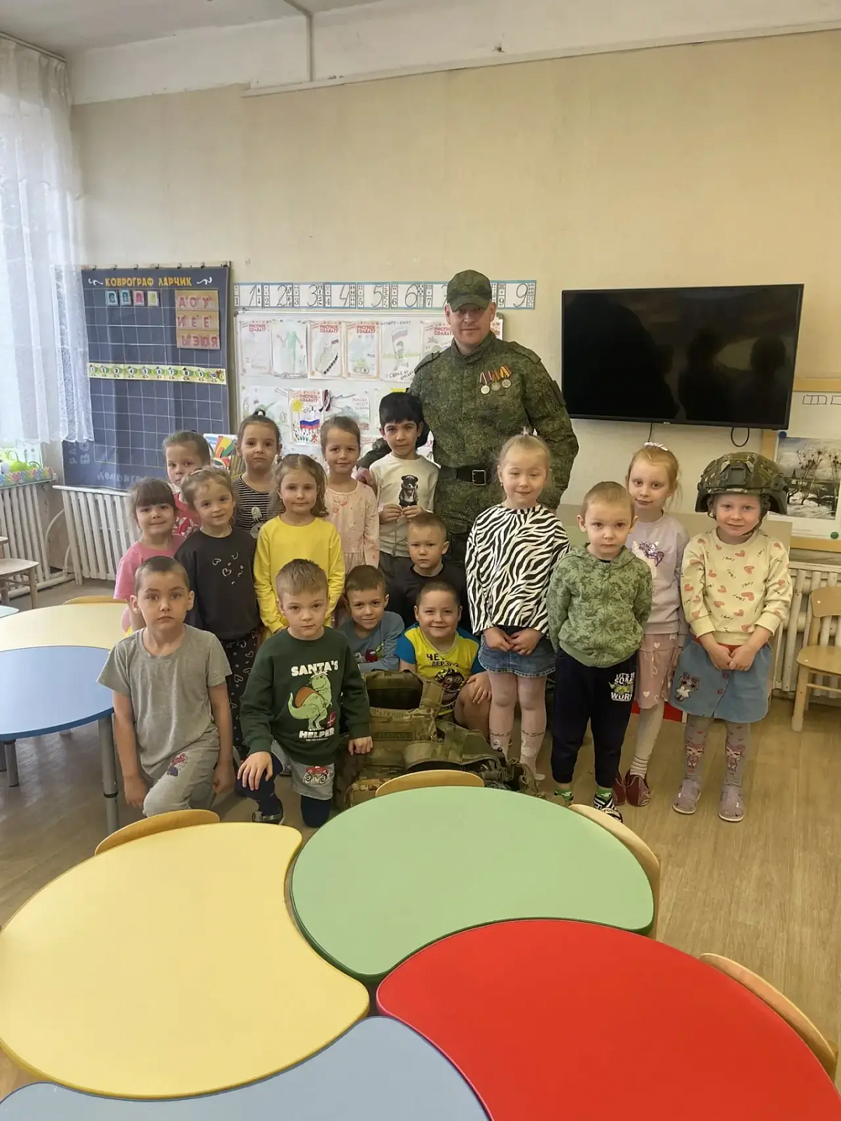В группе "Ласточка" прошло волнующее и очень важное событие. В гости к ребятам пришёл папа нашей воспитанницы, участник боевых действий на СВО, Ерохин Александр Владимирович.