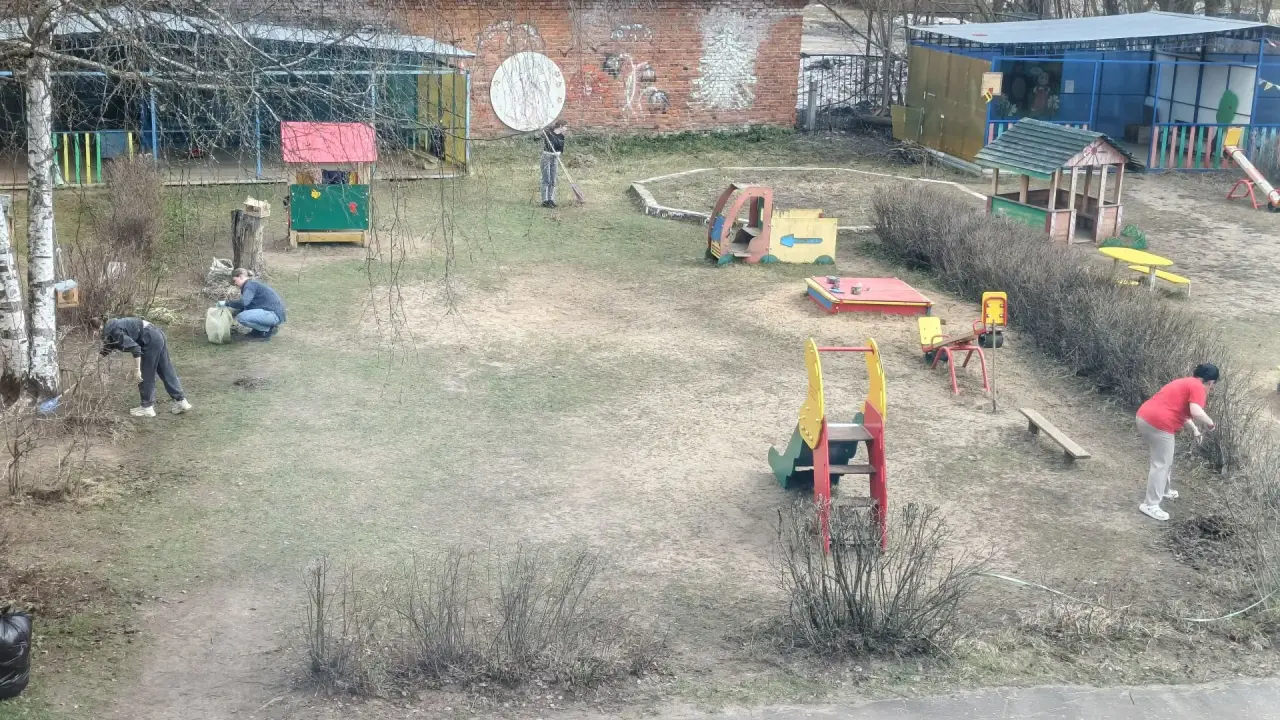 В группе "Мотылёк"прошел весенний субботник. Родители группы дружной компанией вышли на уборку.