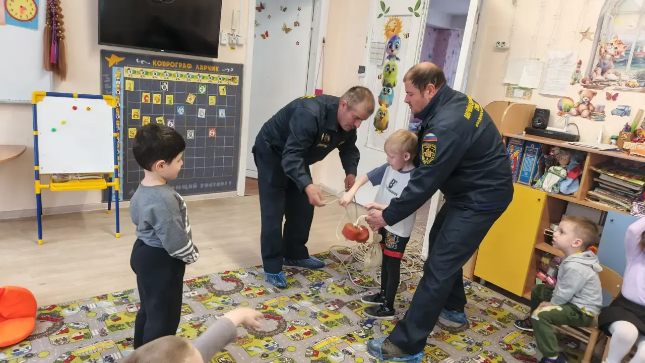 23 апреля 2026 года с воспитанниками группы "Мотылек" была проведена профилактическая беседа с сотрудниками аварийно-спасательной службы.????