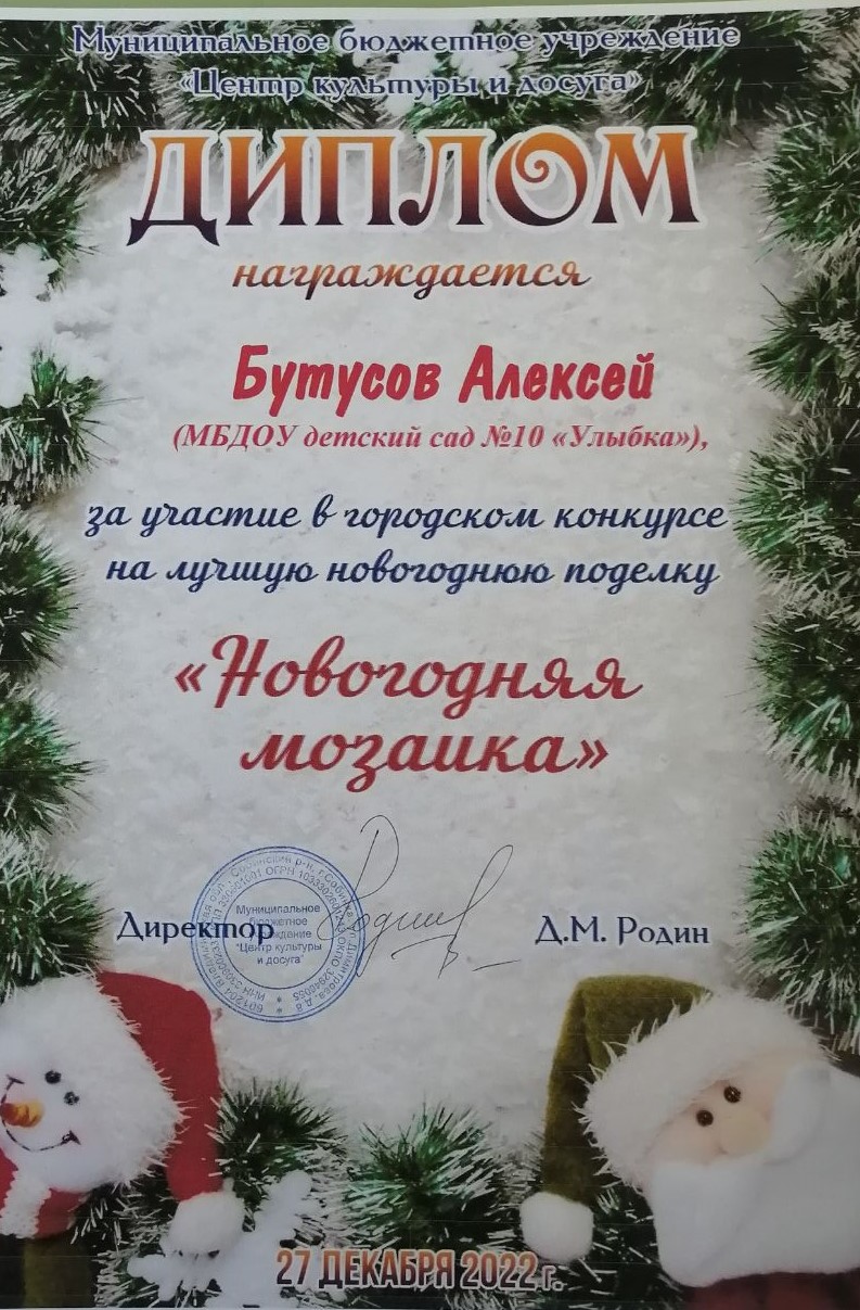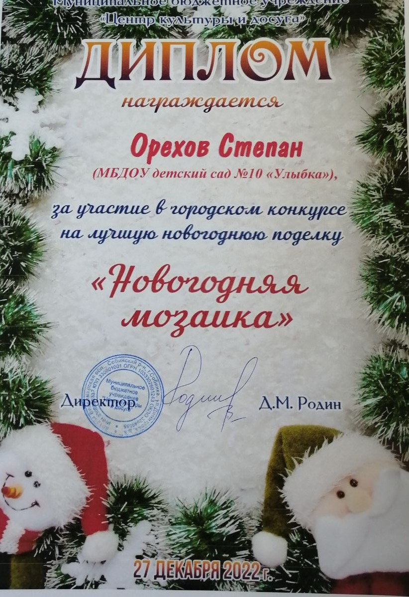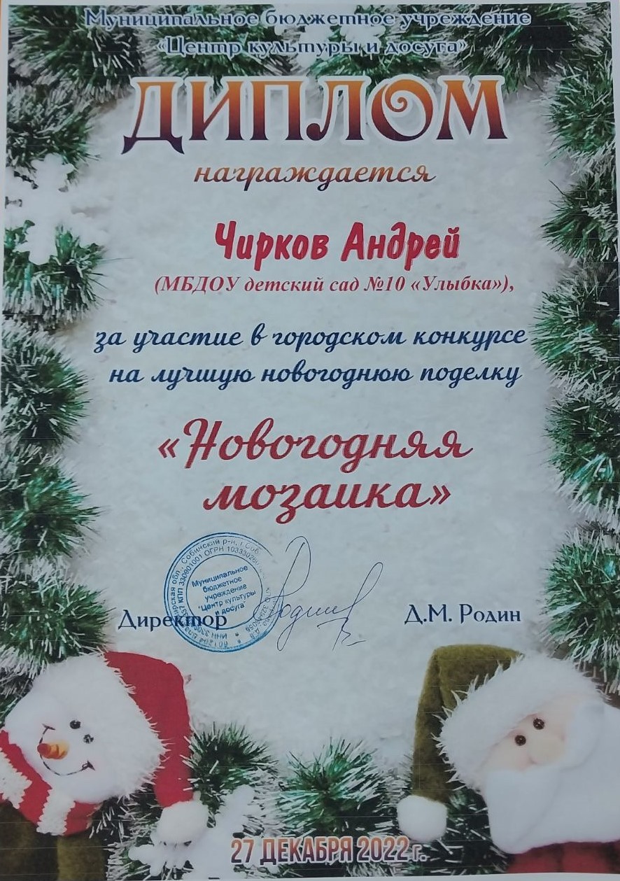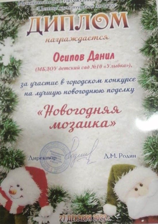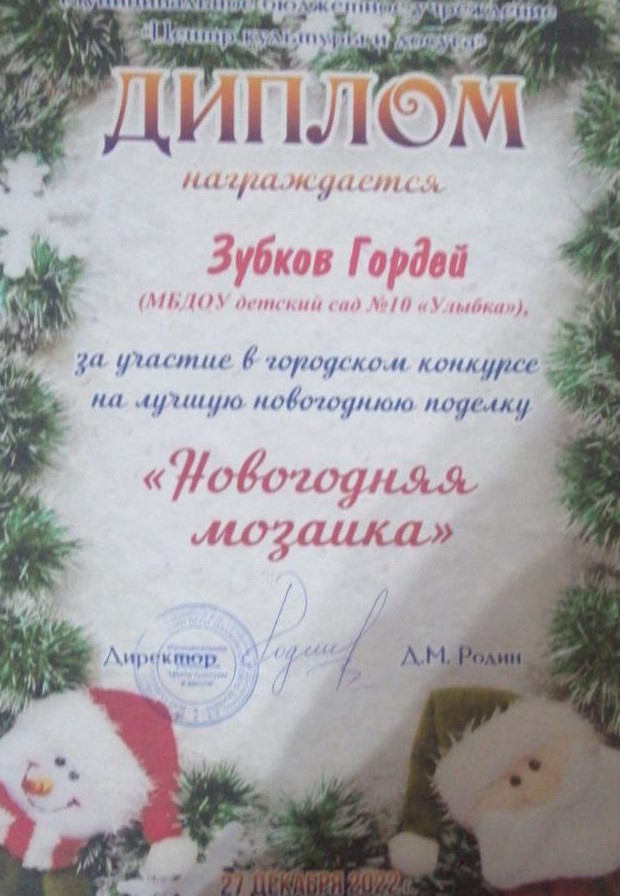 37.Скирдов Денис,«Новогодняя игрушка», группа Ромашка