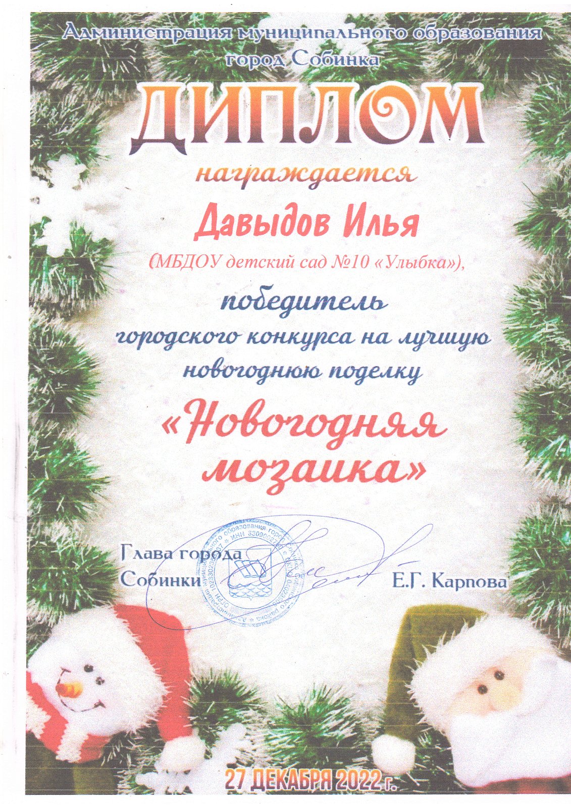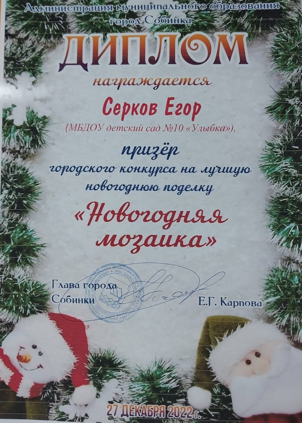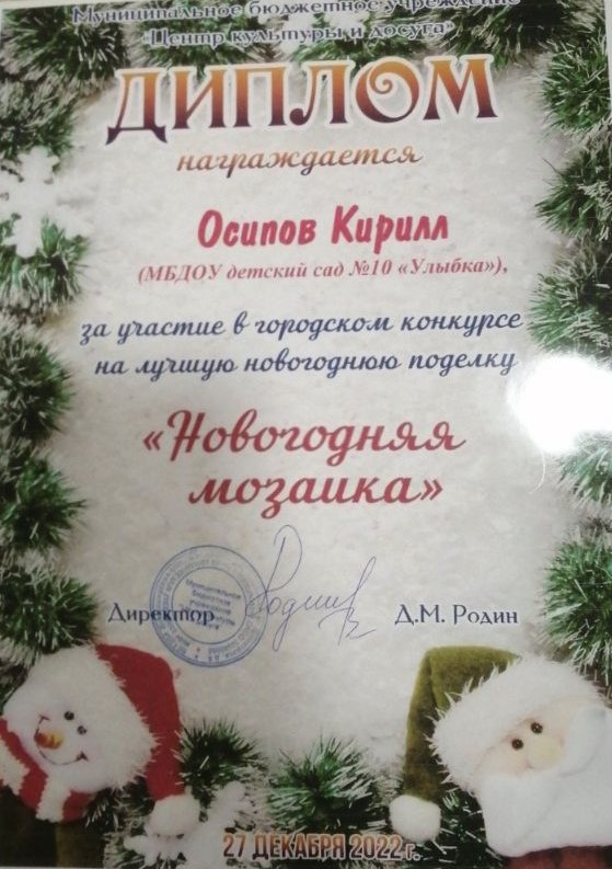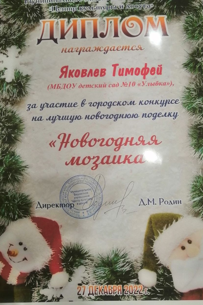 37.Скирдов Денис,«Новогодняя игрушка», группа Ромашка