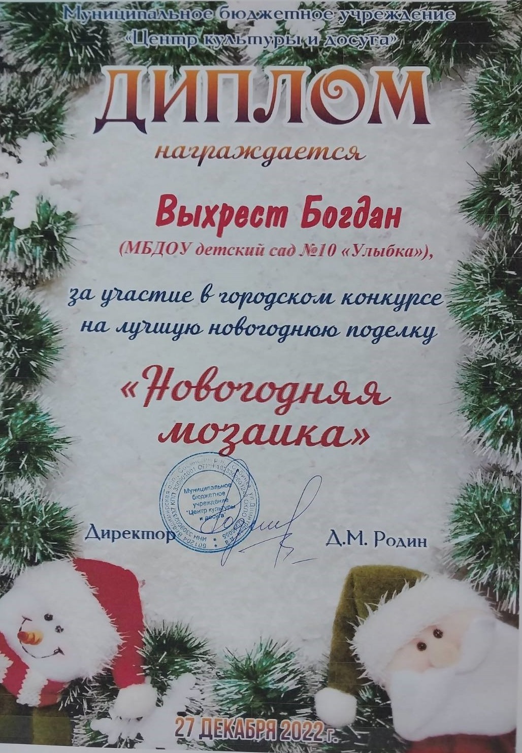 22.Выхрест Богдан, «Новогодняя игрушка», группа Ромашка