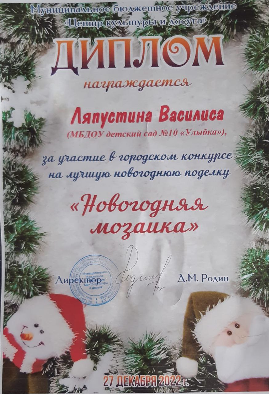 Более 15 лет в Доме культуры проходит городской конкурс «Новогодняя мозаика». Каждый год юные творцы со своими родителями, а бабушками и дедушками, педагогами и воспитателями создают шедевры собственными руками.