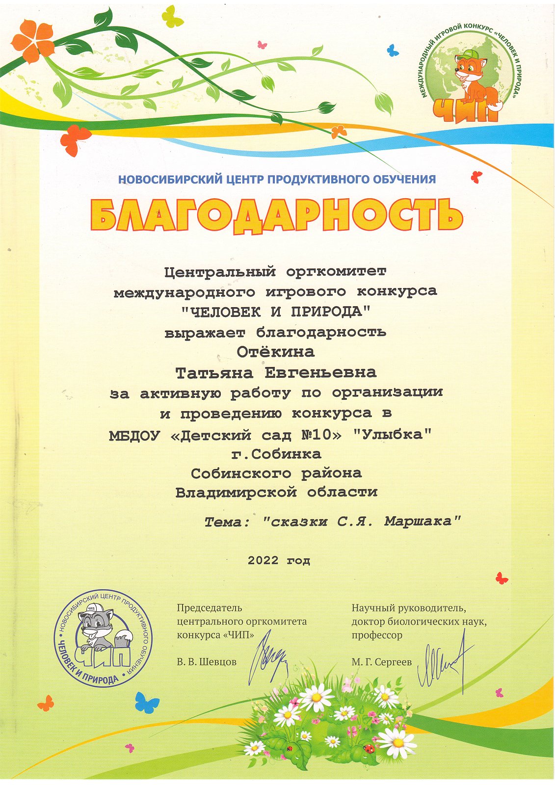 Итоги конкурса "Человек и природа. Сказки С.Я. Маршака"