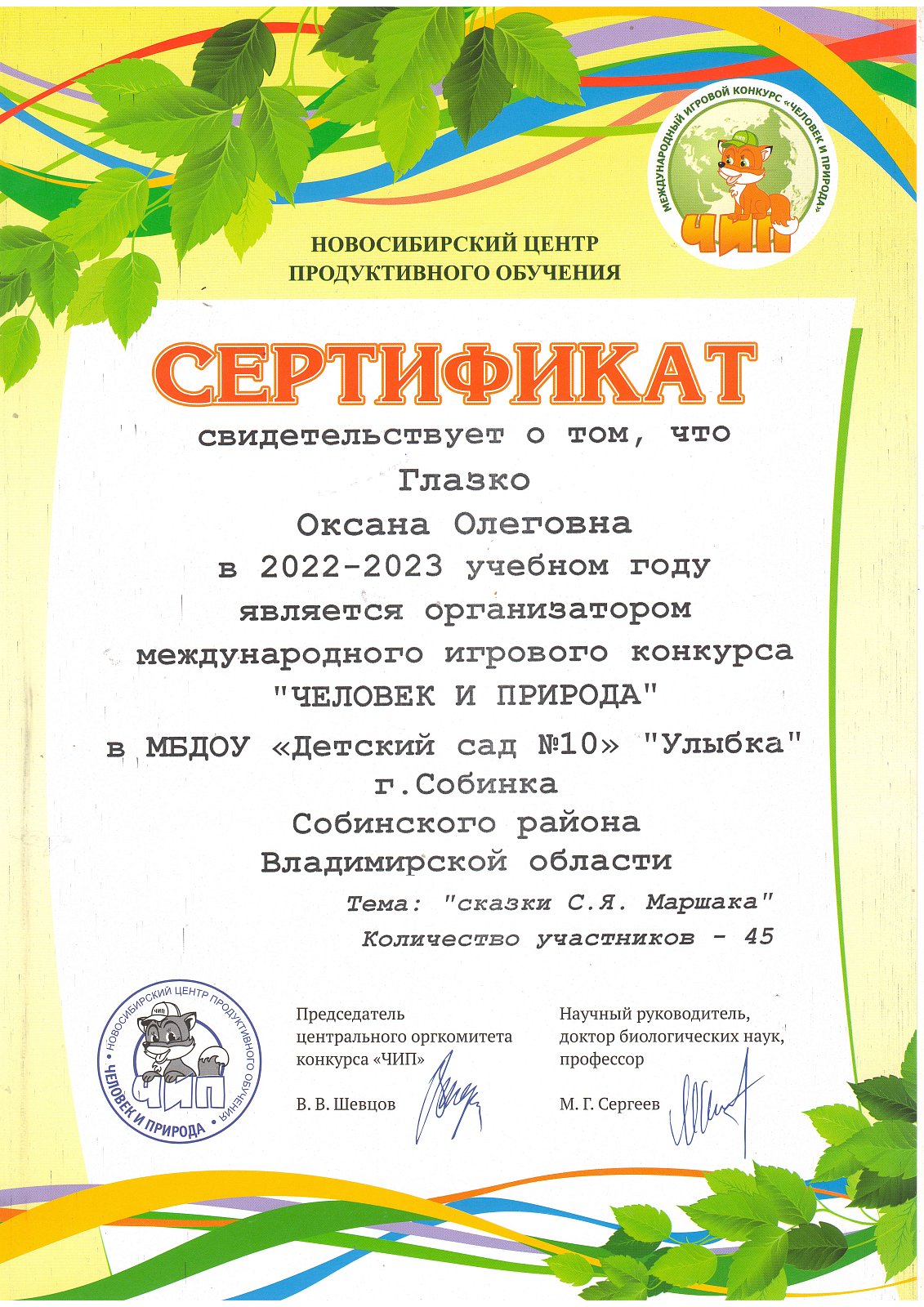 | Золотая рыбка | Максимов Егор | 6 место | Гусева Д.М. |