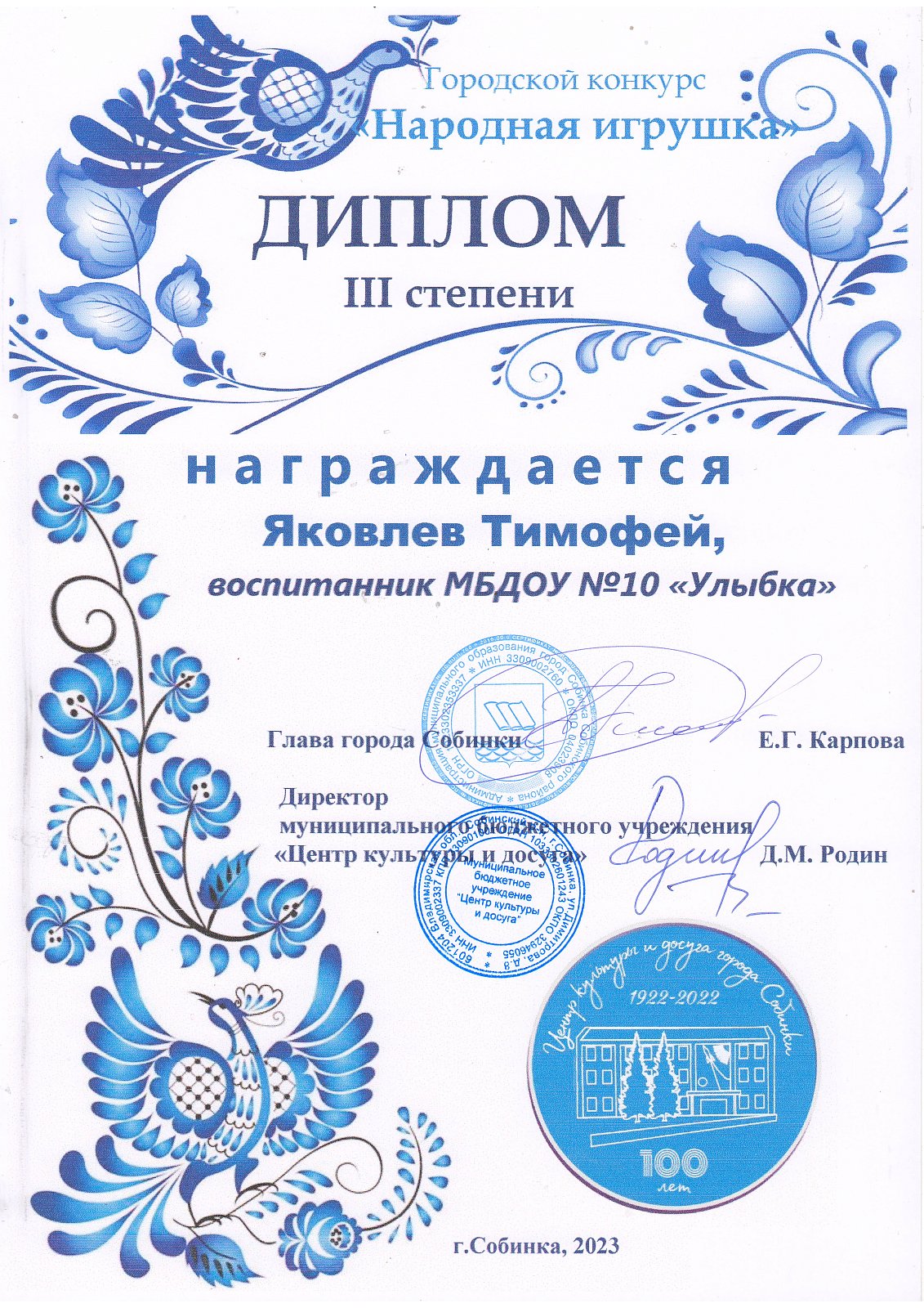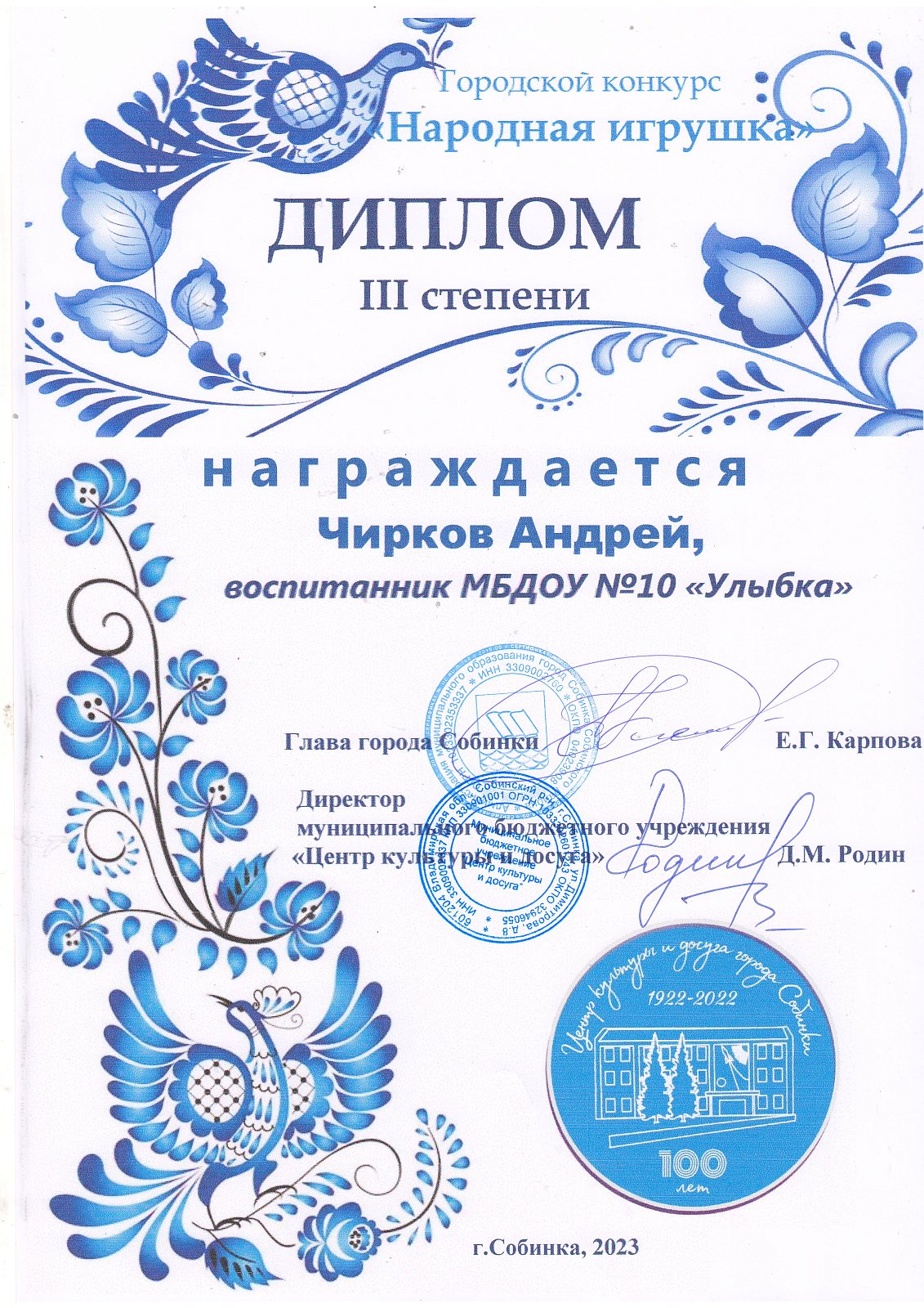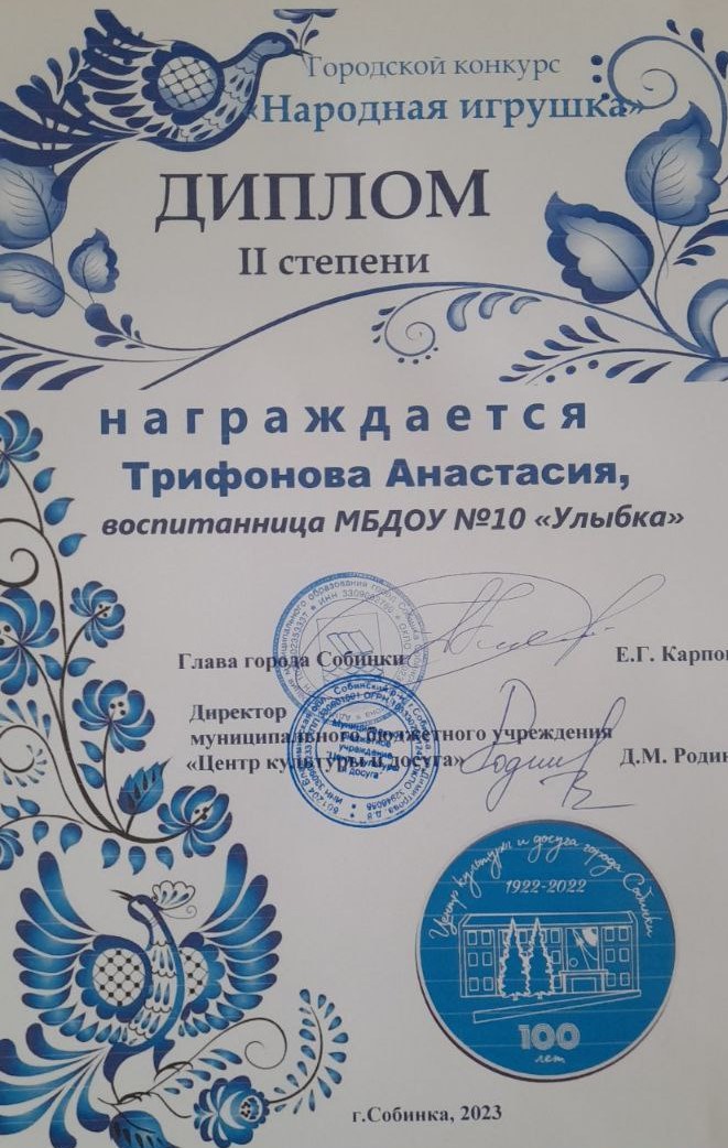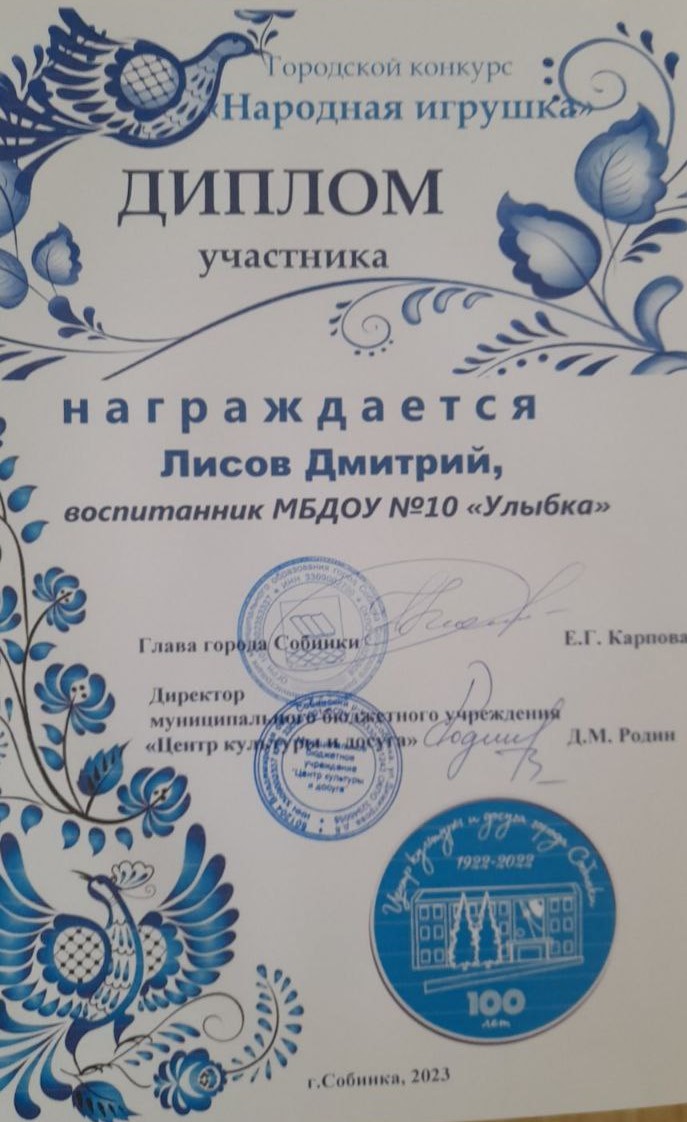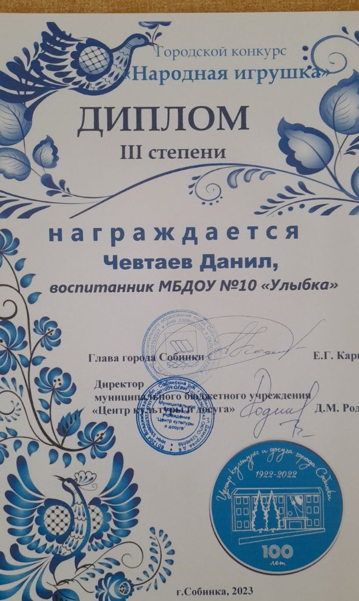 | Ласточка | Чевтаев Данил | Призер, диплом 3 степени | Камнева Е.В. |