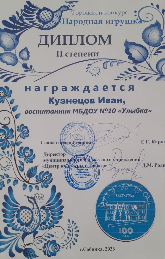 | Ласточка | Кузнецов Иван | Призер, диплом 2 степени | Камнева Е.В. |