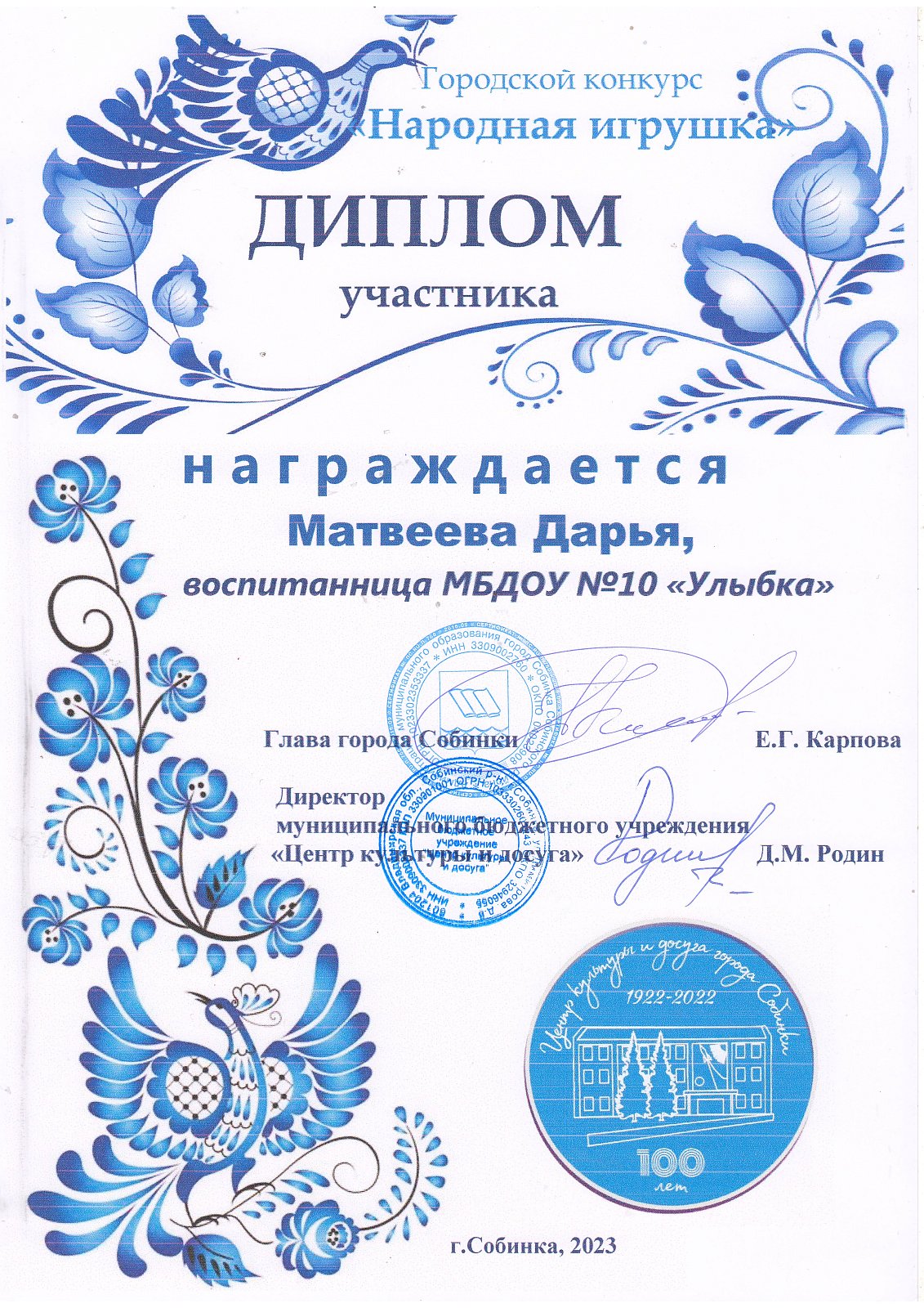 | Ладушки | Матвеева Дарья | участник | Скуднова Т.Н. |