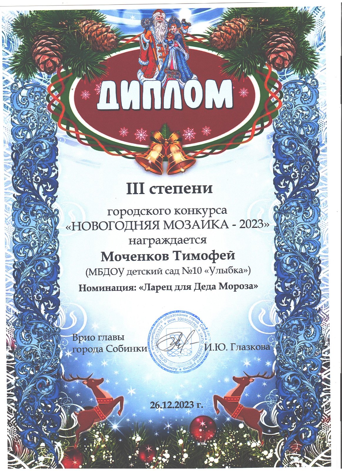 32. Моченков Тимофей номинация «Ларец для Деда Мороза», группа Ладушки
