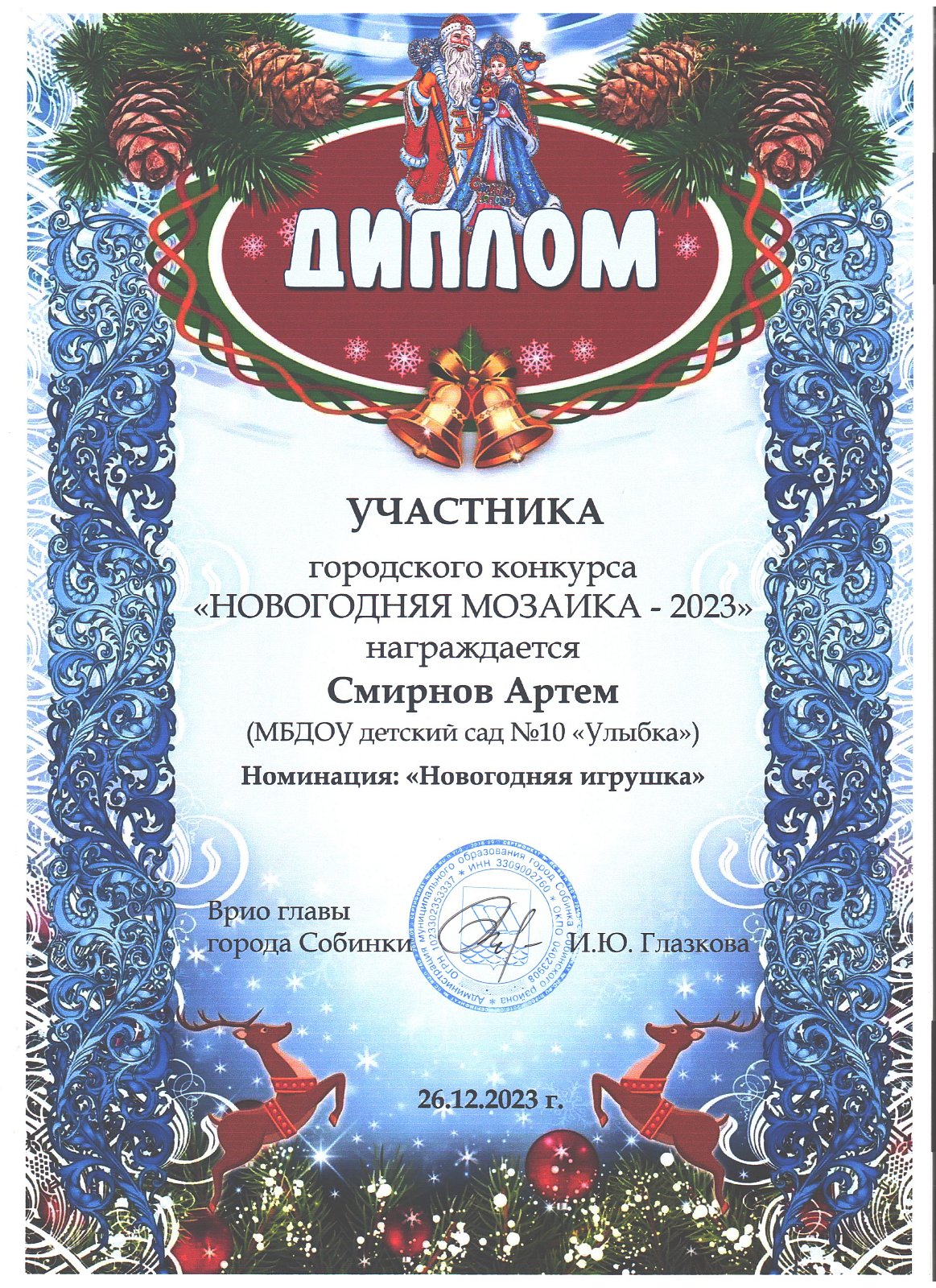 24. Смирнов Данил номинация «Новогодняя игрушка», группа Золотая рыбка
