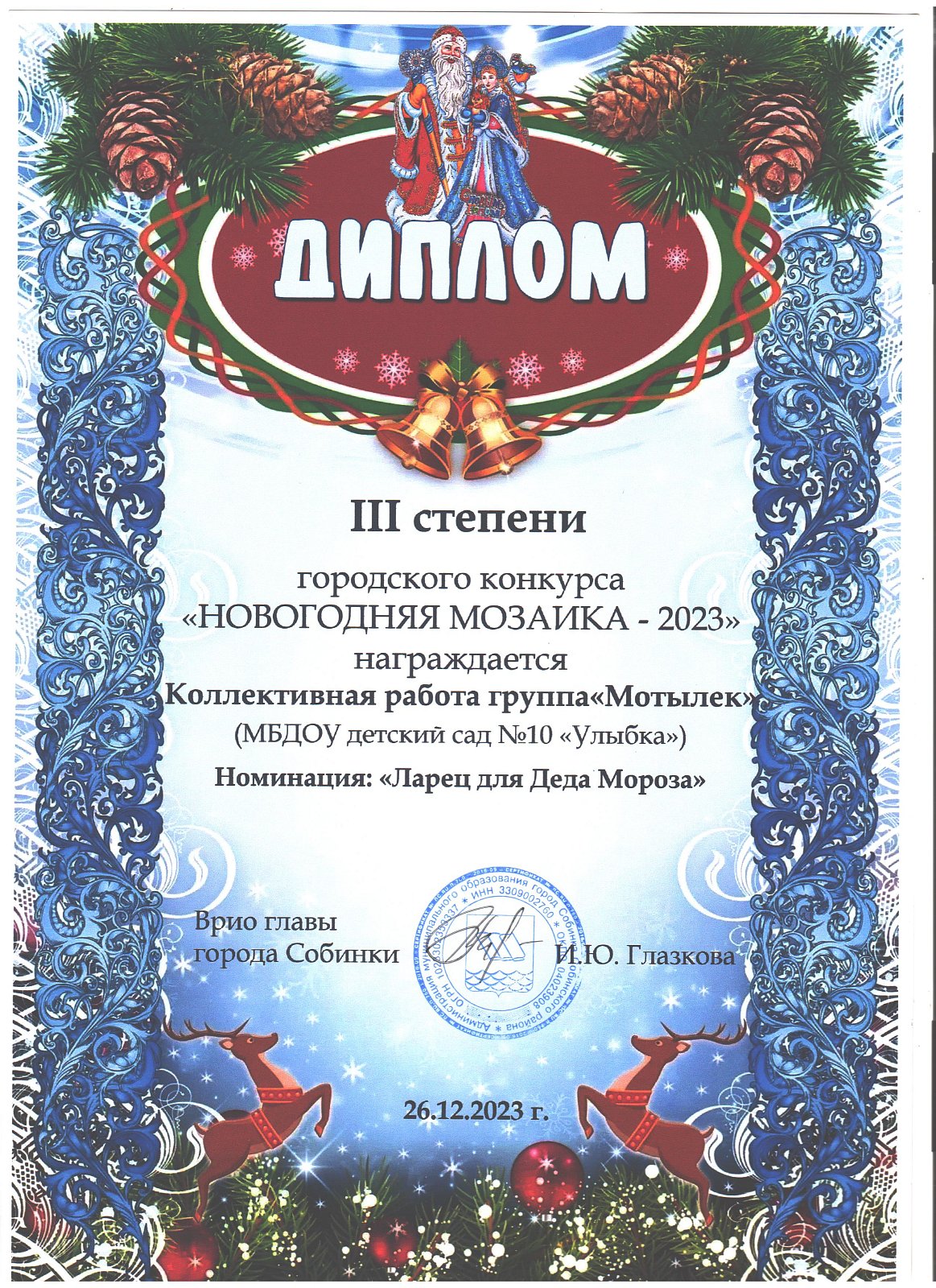 23. Иванов Захар номинация «Ларец для Деда Мороза», группа Ягодка