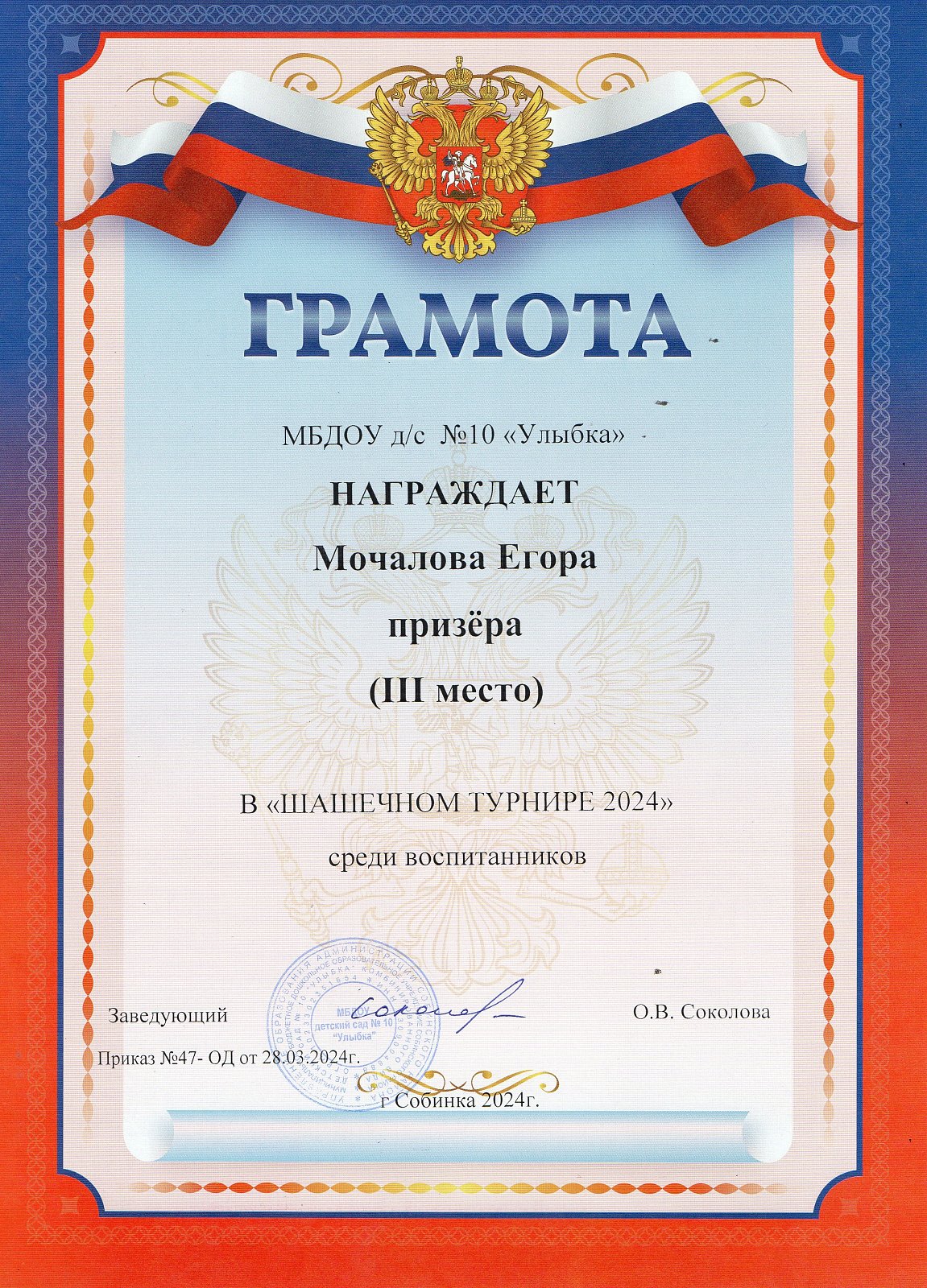 Мочалов Егор | 3 место | Бабурина Н.В. |
