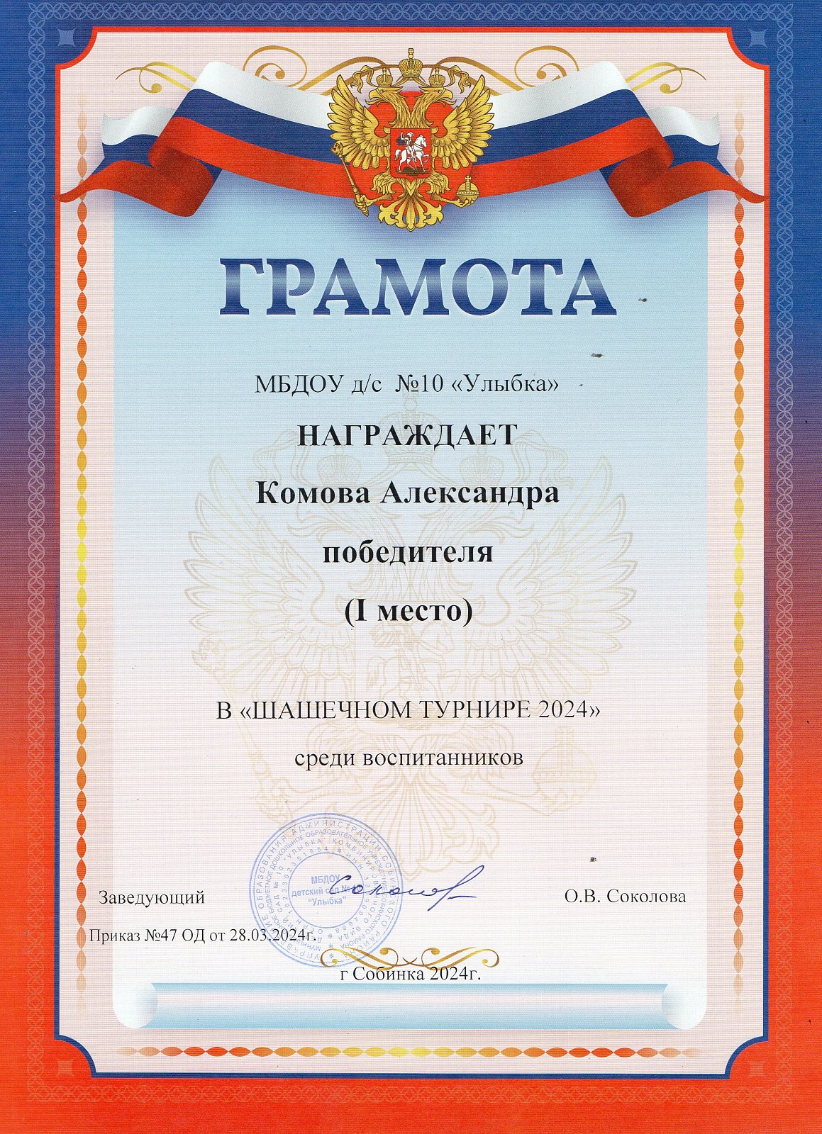 Комов Александр | 1 место | Отёкина Т.Е. |